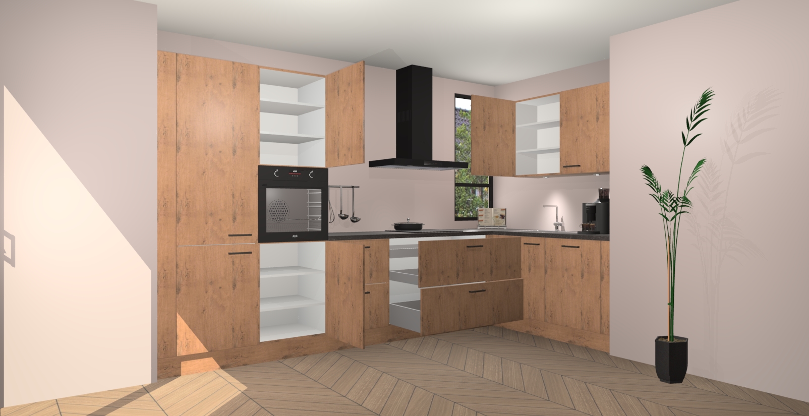 Welkom in uw nieuwe moderne keuken! Laat ons u voorstellen aan de Astoria Eiken keuken Vlaanderen . Deze prachtige hoekkeuken straalt exclusiviteit en luxe uit als geen ander. Het strakke design, de tijdloze kleuren en het model maken van deze keuken een moderne klassieker. En met voldoende opbergruimte heeft deze keuken echt voor ieder wat wils.