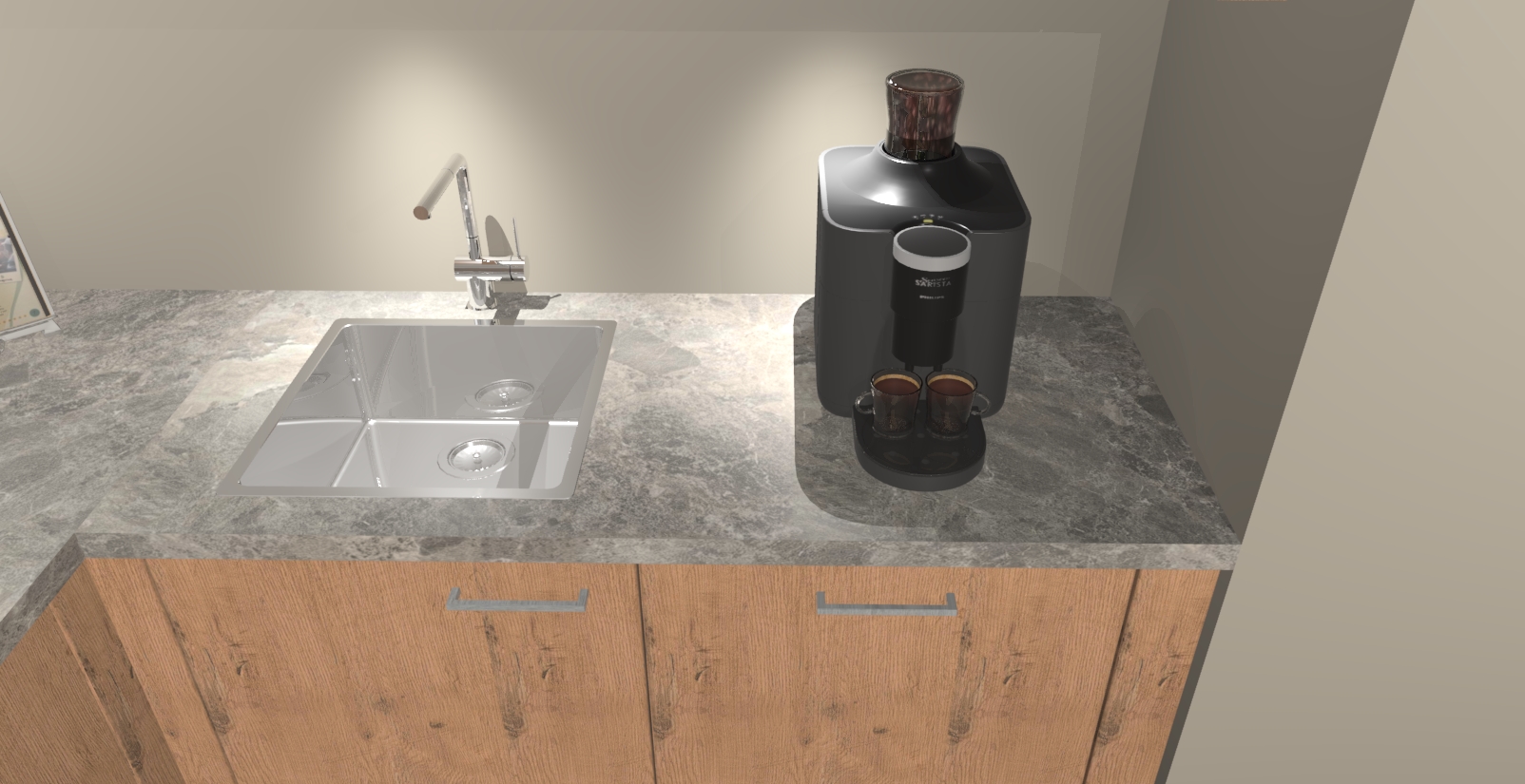 - De spoelbak is nog niet in gevreesd. Dit dient tijdens het werk gedaan te worden