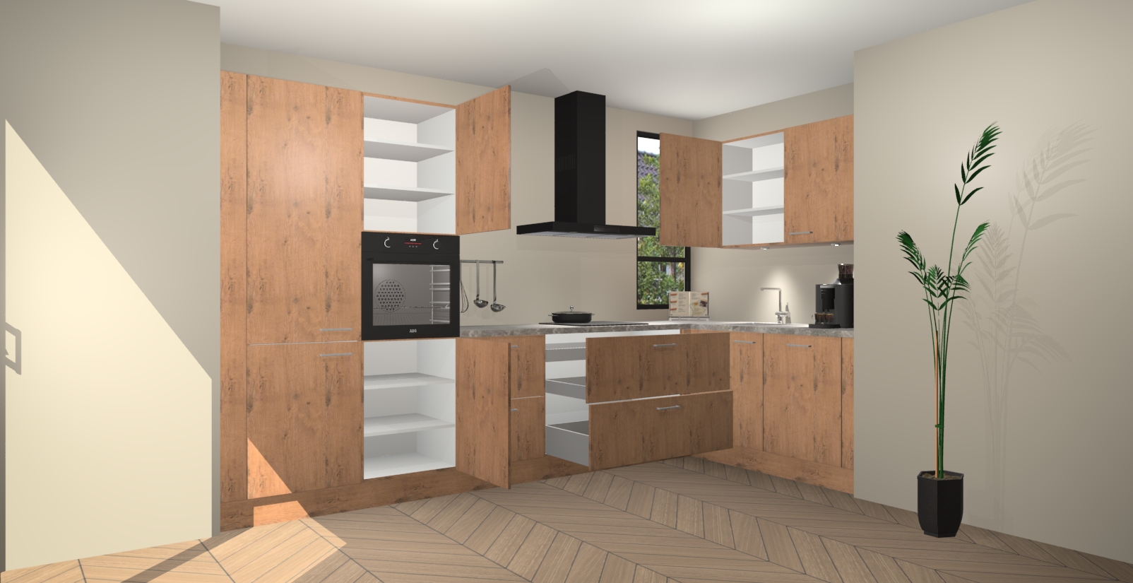Welkom in uw nieuwe moderne keuken! Laat ons u voorstellen aan de Astoria Eiken keuken Vlaanderen . Deze prachtige hoekkeuken straalt exclusiviteit en luxe uit als geen ander. Het strakke design, de tijdloze kleuren en het model maken van deze keuken een moderne klassieker. En met voldoende opbergruimte heeft deze keuken echt voor ieder wat wils.