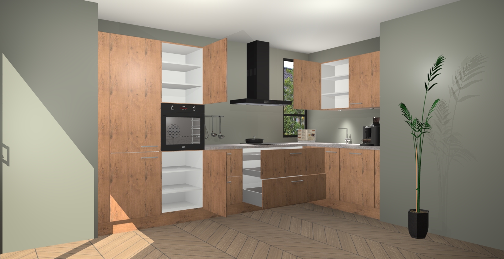 Welkom in uw nieuwe moderne keuken! Laat ons u voorstellen aan de Astoria Eiken keuken Vlaanderen . Deze prachtige hoekkeuken straalt exclusiviteit en luxe uit als geen ander. Het strakke design, de tijdloze kleuren en het model maken van deze keuken een moderne klassieker. En met voldoende opbergruimte heeft deze keuken echt voor ieder wat wils.