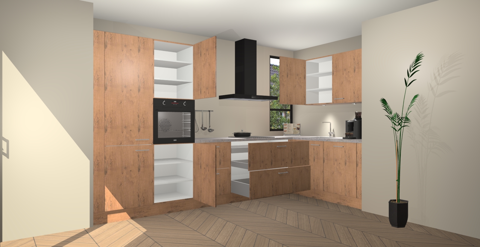 Welkom in uw nieuwe moderne keuken! Laat ons u voorstellen aan de Astoria Eiken keuken Vlaanderen . Deze prachtige hoekkeuken straalt exclusiviteit en luxe uit als geen ander. Het strakke design, de tijdloze kleuren en het model maken van deze keuken een moderne klassieker. En met voldoende opbergruimte heeft deze keuken echt voor ieder wat wils.