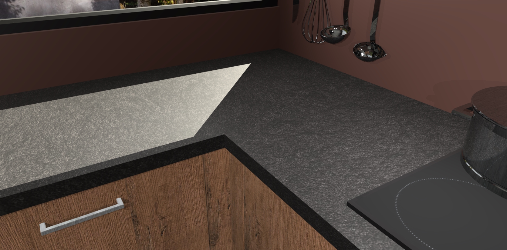 - Bij een hoekwerkblad zijn de hoeken in gevreesd en op maat gemaakt