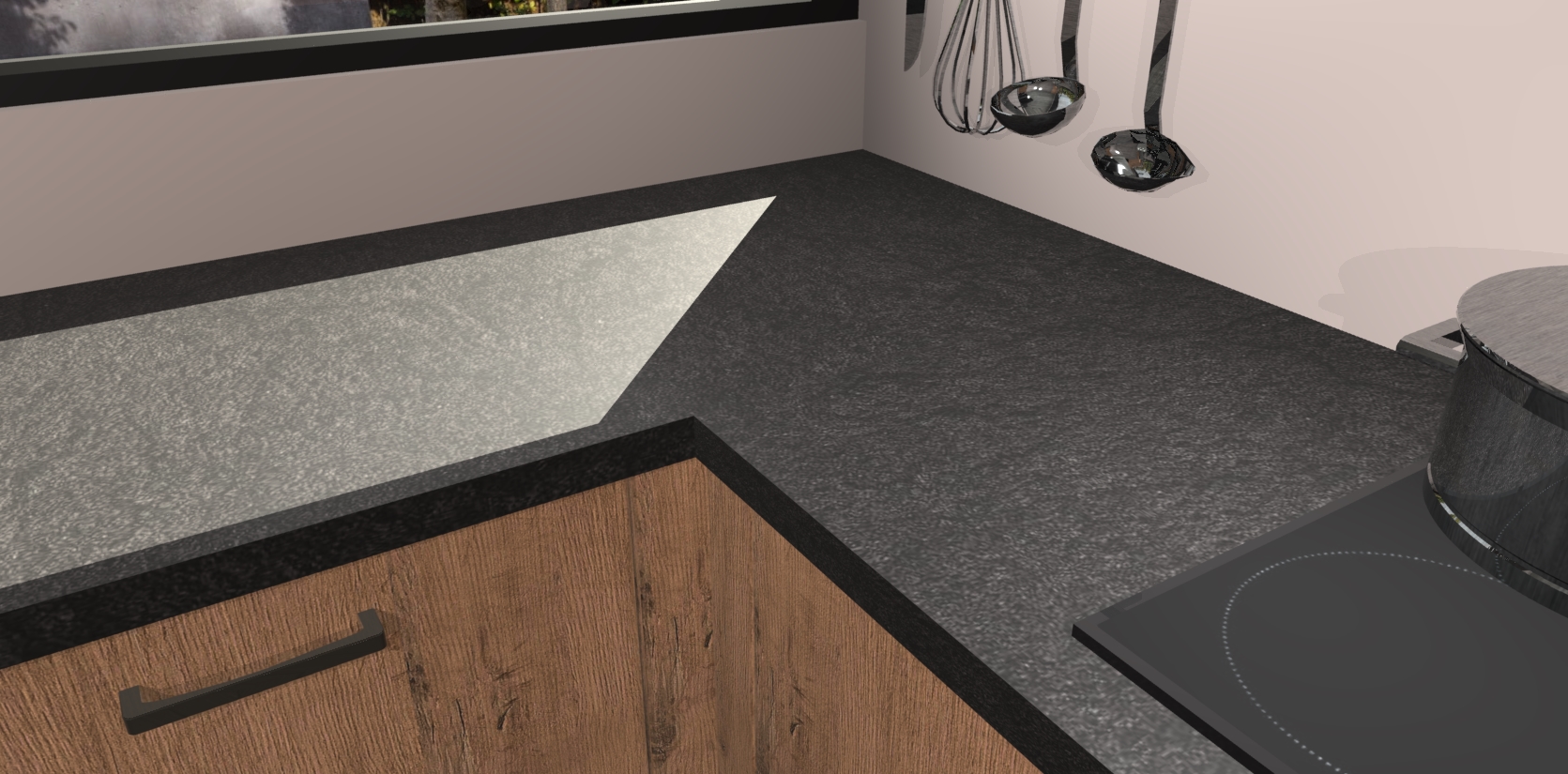 - Bij een hoekwerkblad zijn de hoeken in gevreesd en op maat gemaakt