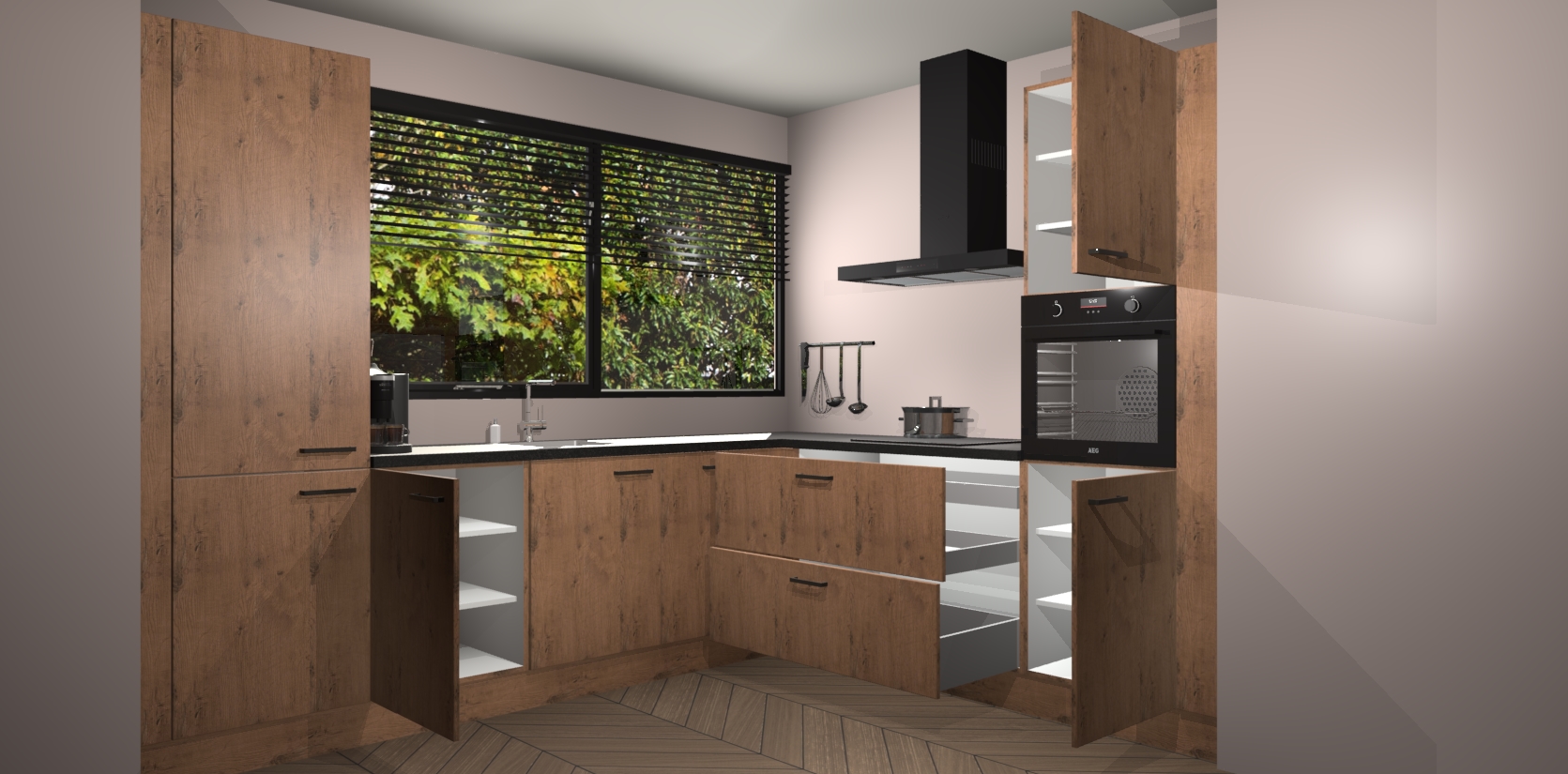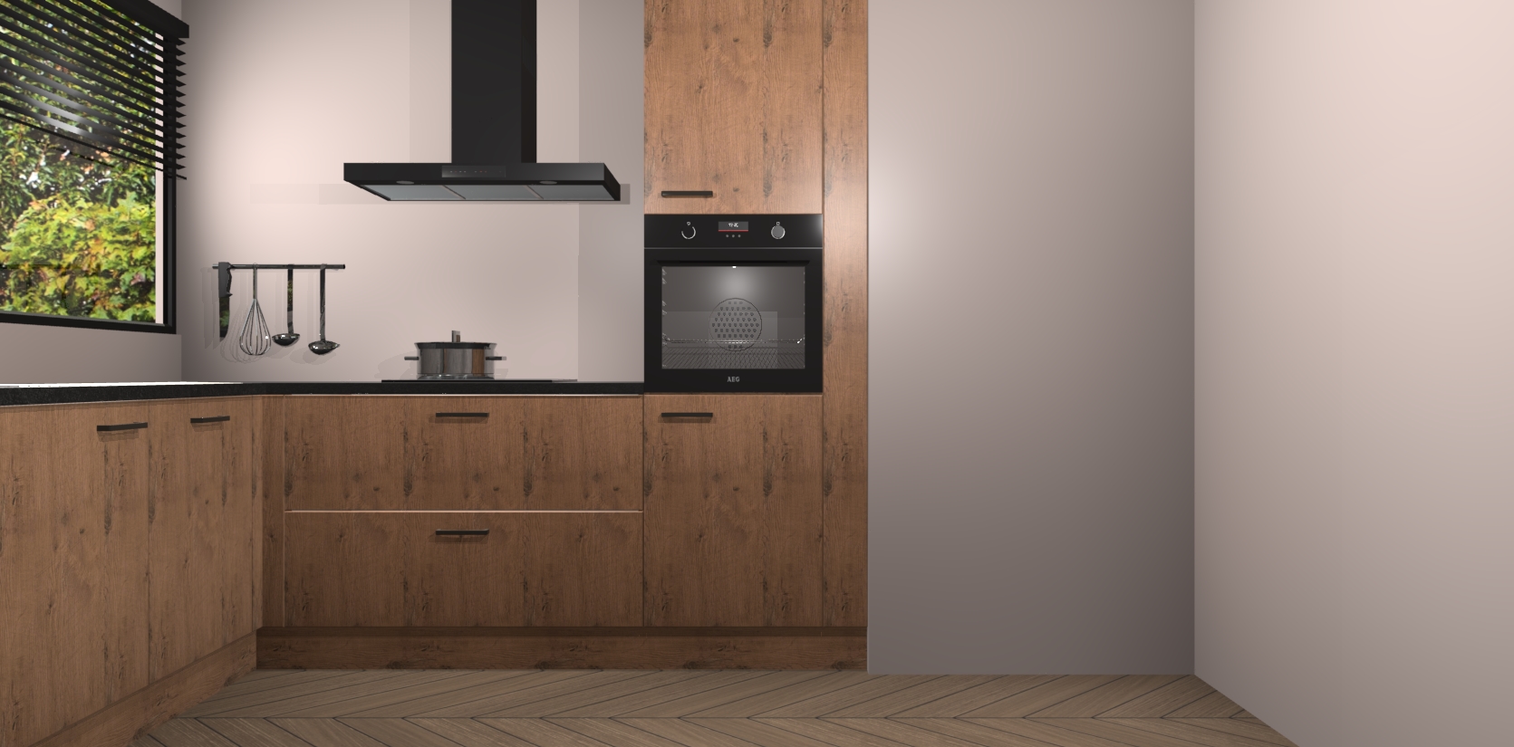 Met een modern, tijdloos design en ruime opslagruimte, zult u zich in no-time thuis voelen in uw nieuwe keuken. Uw leven wordt eenvoudiger met de soft-close deuren die voor het ultieme stille comfort zorgen - geen geluid dat u stoort terwijl u kookt. Ook is de keuken voorzien van 5 ingebouwde apparaten: een oven, inductie kookplaat, afzuigkap, vaatwasser en koelkast. Deze kunnen gemakkelijk na bestelling worden bijgewerkt naar AEG - waardoor uw luxe ervaring compleet is.