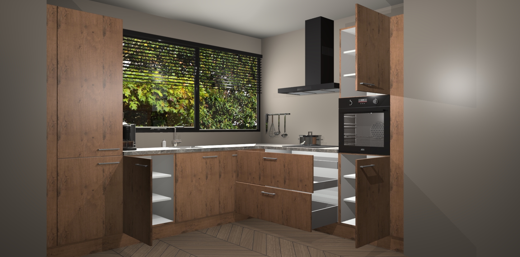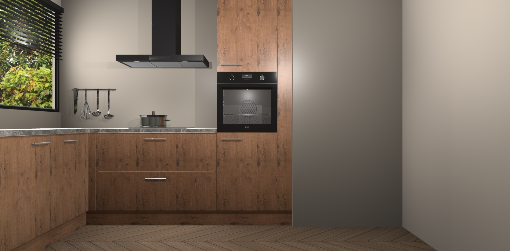 Met een modern, tijdloos design en ruime opslagruimte, zult u zich in no-time thuis voelen in uw nieuwe keuken. Uw leven wordt eenvoudiger met de soft-close deuren die voor het ultieme stille comfort zorgen - geen geluid dat u stoort terwijl u kookt. Ook is de keuken voorzien van 5 ingebouwde apparaten: een oven, inductie kookplaat, afzuigkap, vaatwasser en koelkast. Deze kunnen gemakkelijk na bestelling worden bijgewerkt naar AEG - waardoor uw luxe ervaring compleet is.