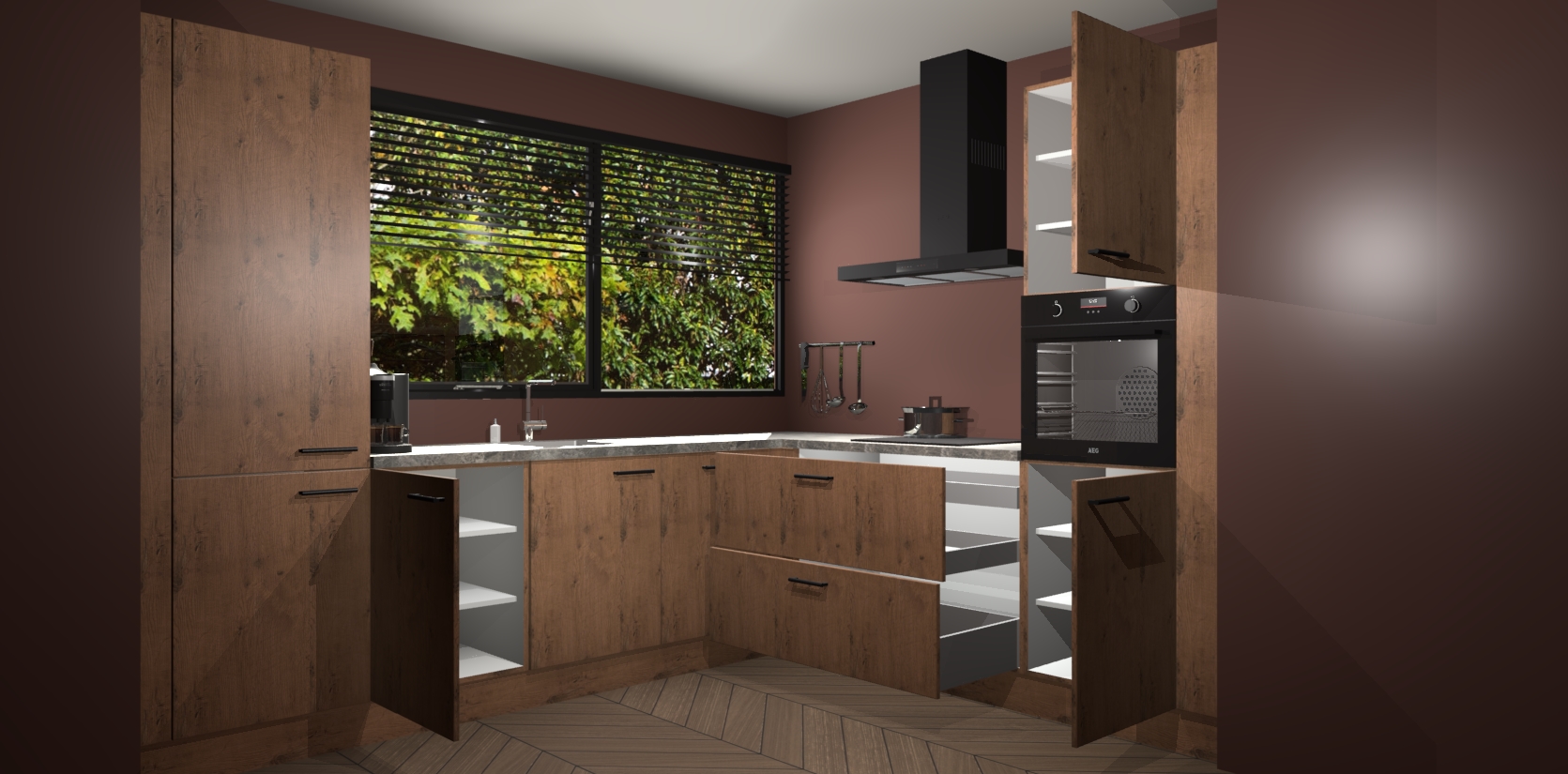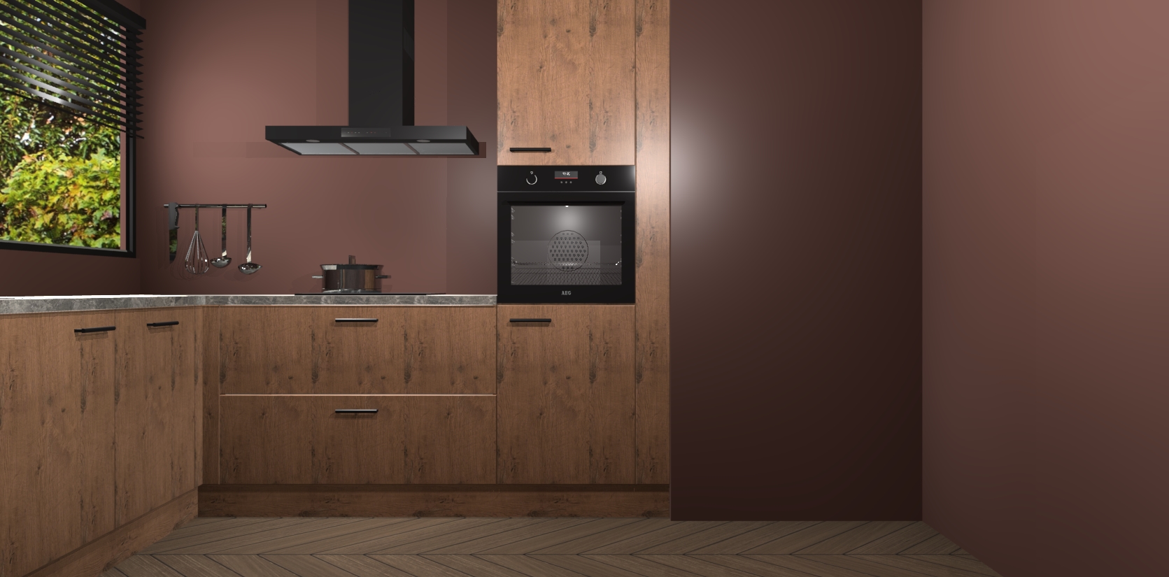 Met een modern, tijdloos design en ruime opslagruimte, zult u zich in no-time thuis voelen in uw nieuwe keuken. Uw leven wordt eenvoudiger met de soft-close deuren die voor het ultieme stille comfort zorgen - geen geluid dat u stoort terwijl u kookt. Ook is de keuken voorzien van 5 ingebouwde apparaten: een oven, inductie kookplaat, afzuigkap, vaatwasser en koelkast. Deze kunnen gemakkelijk na bestelling worden bijgewerkt naar AEG - waardoor uw luxe ervaring compleet is.