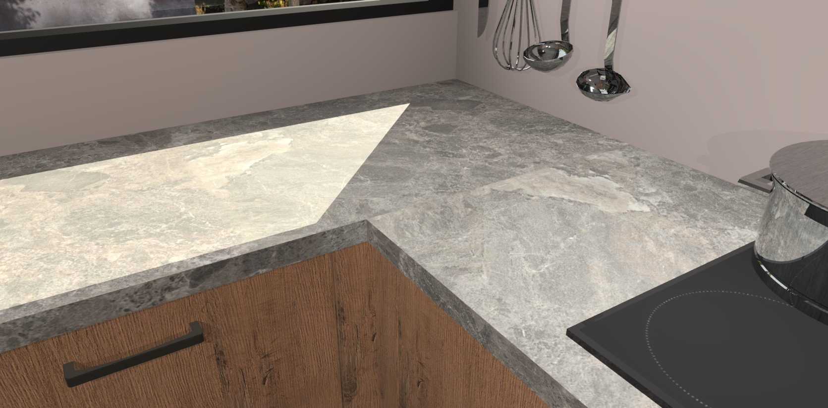 • Bij een hoekwerkblad zijn de hoeken in gevreesd en op maat gemaakt