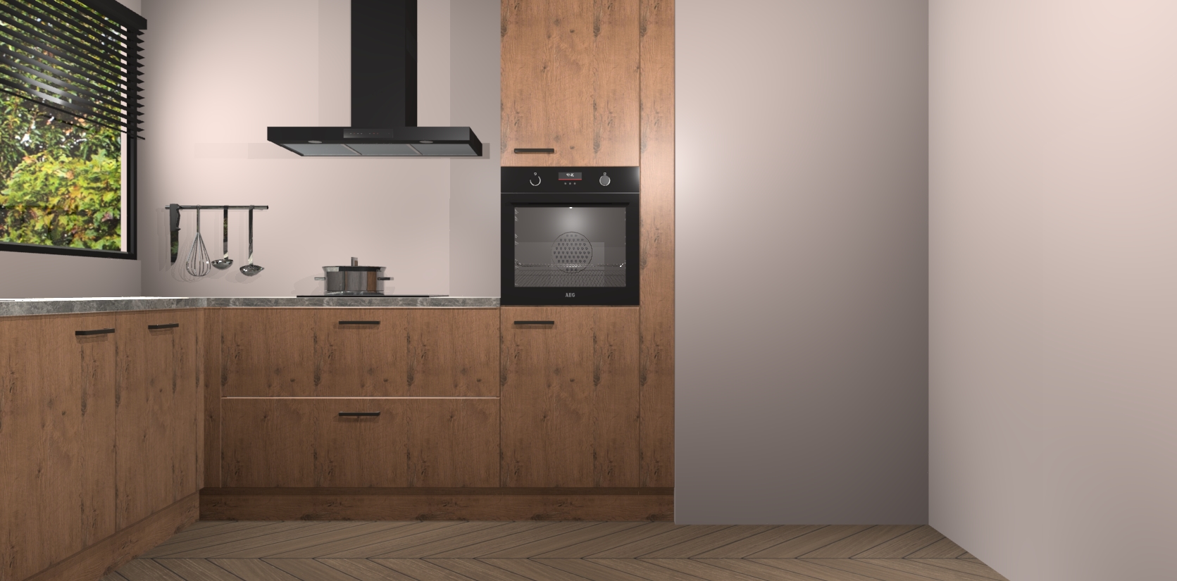 Met een modern, tijdloos design en ruime opslagruimte, zult u zich in no-time thuis voelen in uw nieuwe keuken. Uw leven wordt eenvoudiger met de soft-close deuren die voor het ultieme stille comfort zorgen - geen geluid dat u stoort terwijl u kookt. Ook is de keuken voorzien van 5 ingebouwde apparaten: een oven, inductie kookplaat, afzuigkap, vaatwasser en koelkast. Deze kunnen gemakkelijk na bestelling worden bijgewerkt naar AEG - waardoor uw luxe ervaring compleet is.