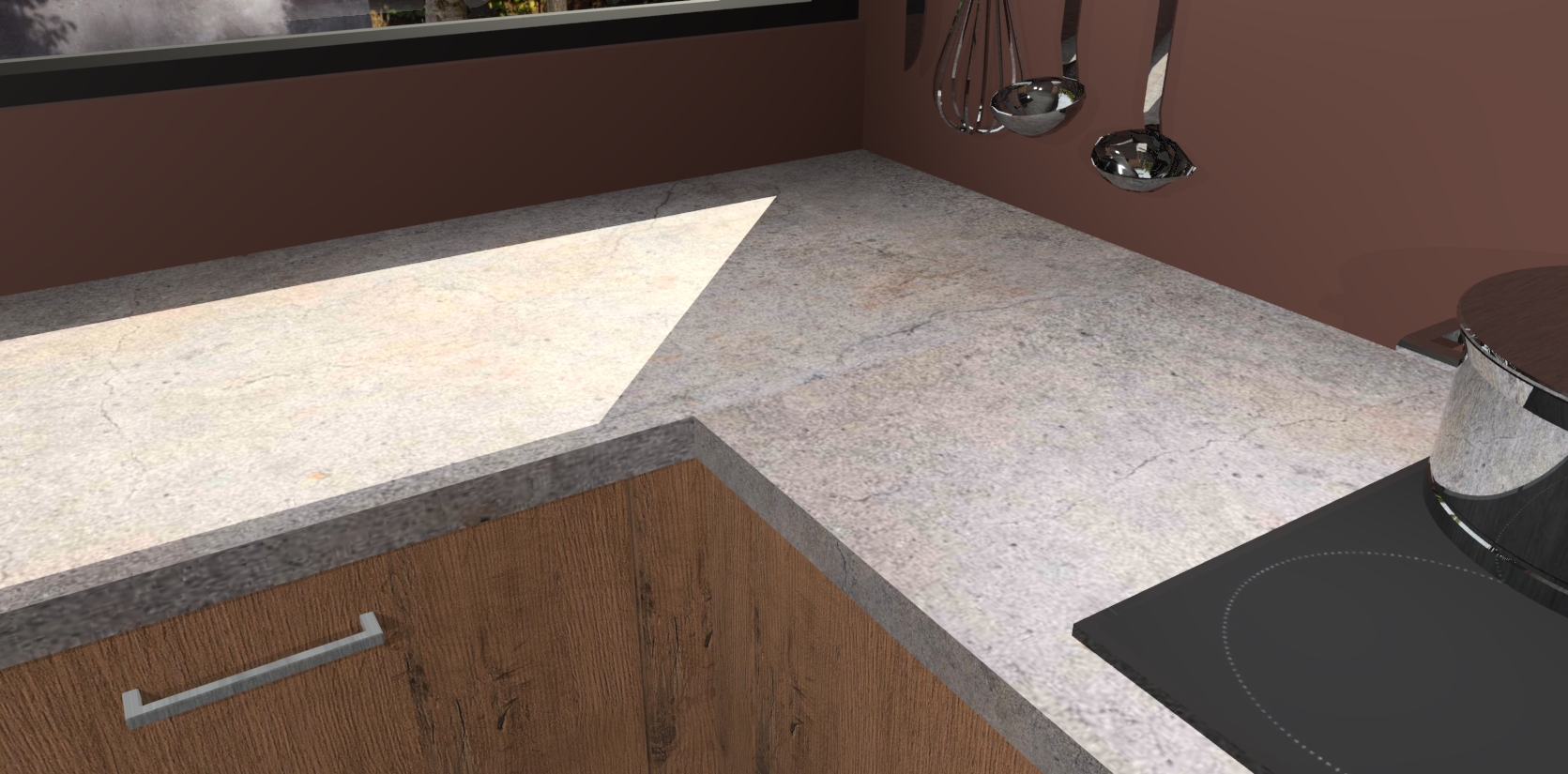 - Bij een hoekwerkblad zijn de hoeken in gevreesd en op maat gemaakt