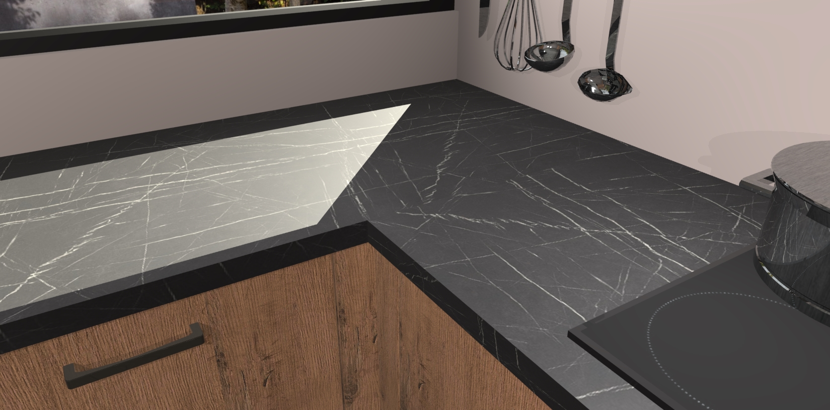 - Bij een hoekwerkblad zijn de hoeken in gevreesd en op maat gemaakt