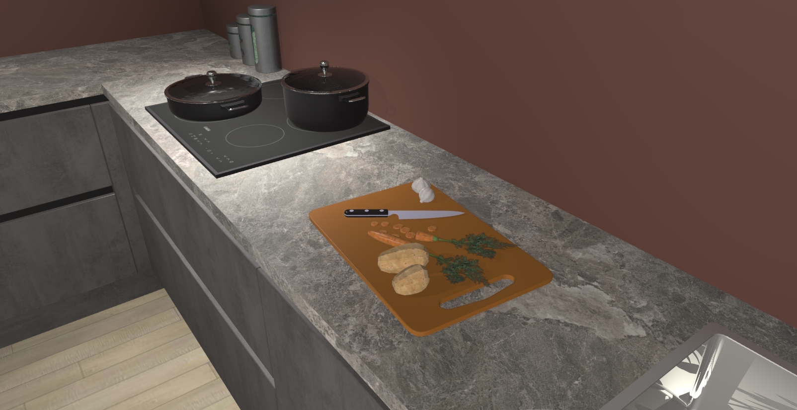 Inclusief plinten, stelpoten en werkblad