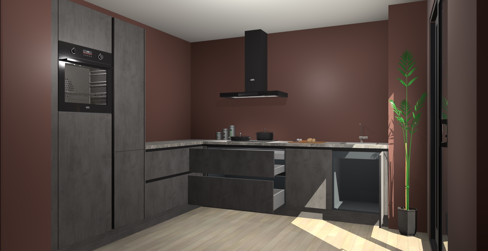 Laat u verrassen door de nieuwste en meest innovatieve keuken van dit moment: De Beton Antraciet greeploze keuken Antibes. Deze chique keuken straalt een stijlvolle sfeer uit die zeker bewondering zal oogsten bij uw gasten. Als u op zoek bent naar voldoende opbergruimte voor al uw keukengadgets en -gerei, dan is dit de perfecte oplossing. Met ingebouwde apparatuur zoals een oven, inductiekookplaat, afzuigkap, vaatwasser en koelkast! U krijgt niet alleen veel opbergruimte, maar ook een betrouwbaar soft close-deursysteem dat ervoor zorgt dat er nooit meer kastdeuren dichtslaan!