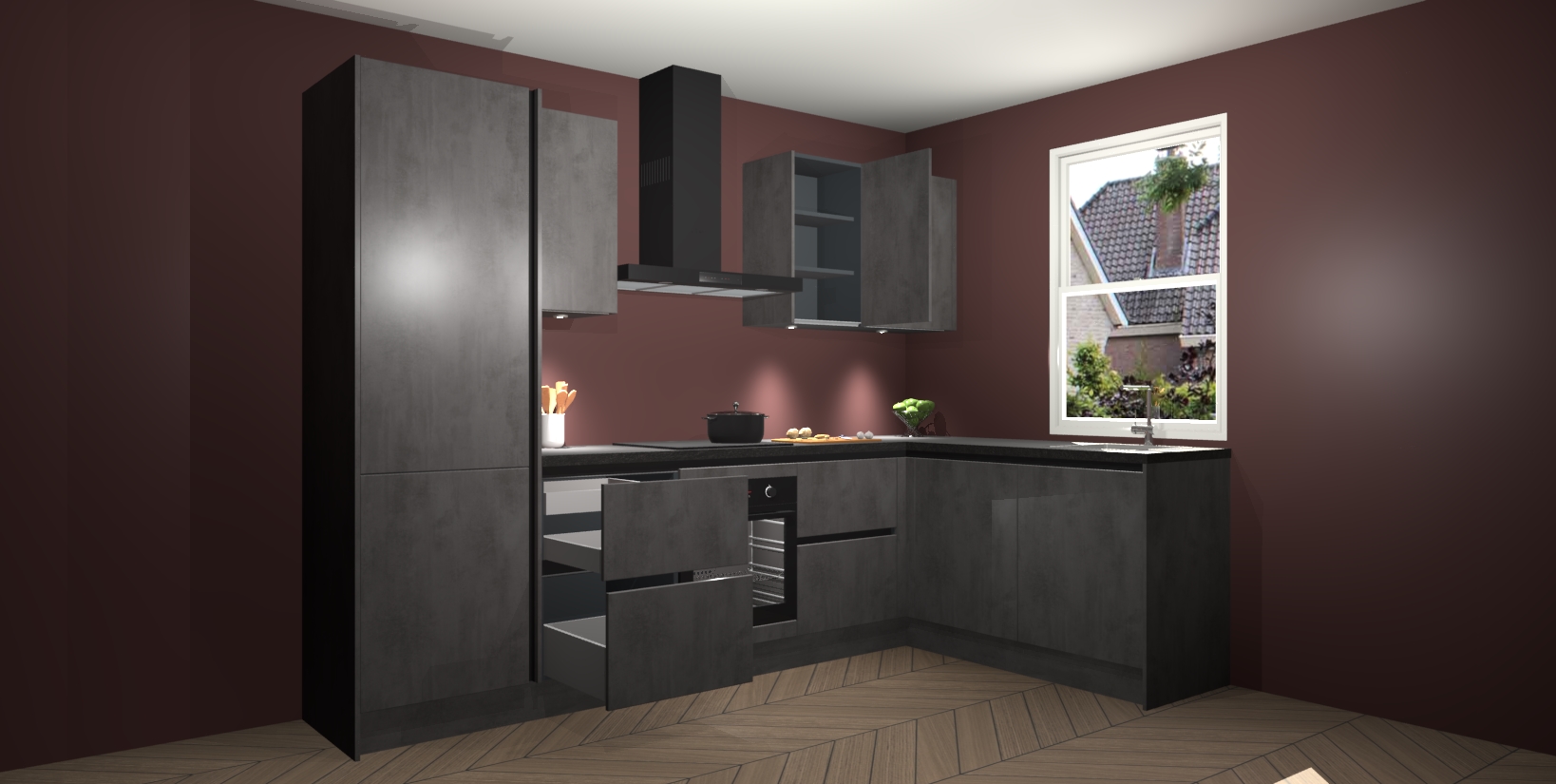 Maak kennis met de trendsettende en luxe Beton Antraciet greeploze keuken Bazel! Deze uitzonderlijke keuken van Duitse kwaliteit is stijlvol, modern en perfect om elk huis mee op te fleuren. De binnenkant van de kasten worden meegenomen in een bijpassende kleur om een samenhangende eigentijdse esthetiek te voltooien. U zult dol zijn op hoe uw pas gerenoveerde keuken eruitziet met de Beton Antraciet editie!