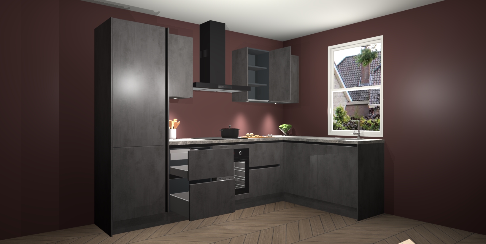 Maak kennis met de trendsettende en luxe Beton Antraciet greeploze keuken Bazel! Deze uitzonderlijke keuken van Duitse kwaliteit is stijlvol, modern en perfect om elk huis mee op te fleuren. De binnenkant van de kasten worden meegenomen in een bijpassende kleur om een samenhangende eigentijdse esthetiek te voltooien. U zult dol zijn op hoe uw pas gerenoveerde keuken eruitziet met de Beton Antraciet editie!