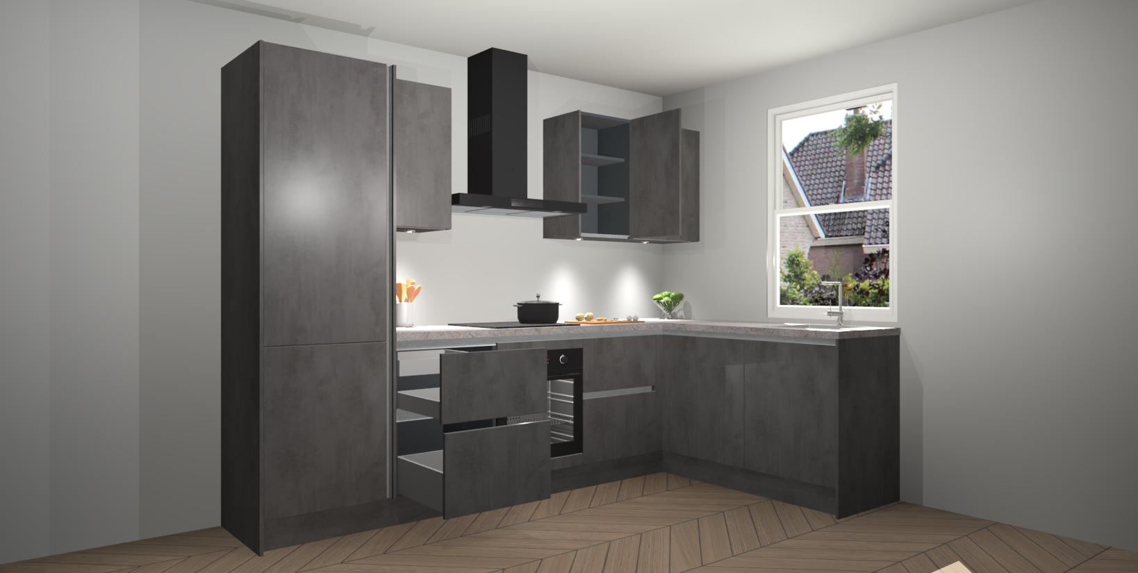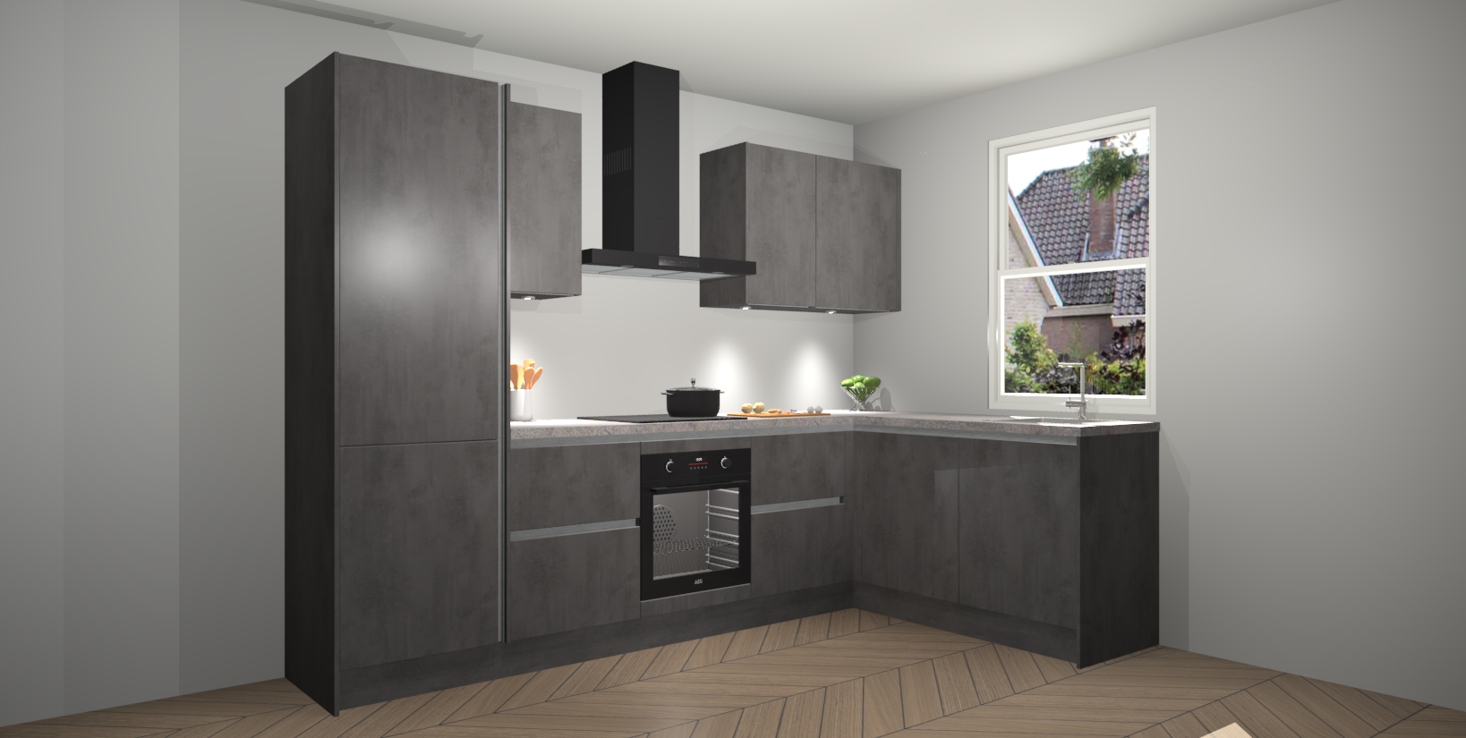 Voor iedereen die op zoek is naar een upgrade van zijn kookimperium, zoek niet verder dan de Beton Antraciet greeploze keuken Bazel van Kitchen247!
