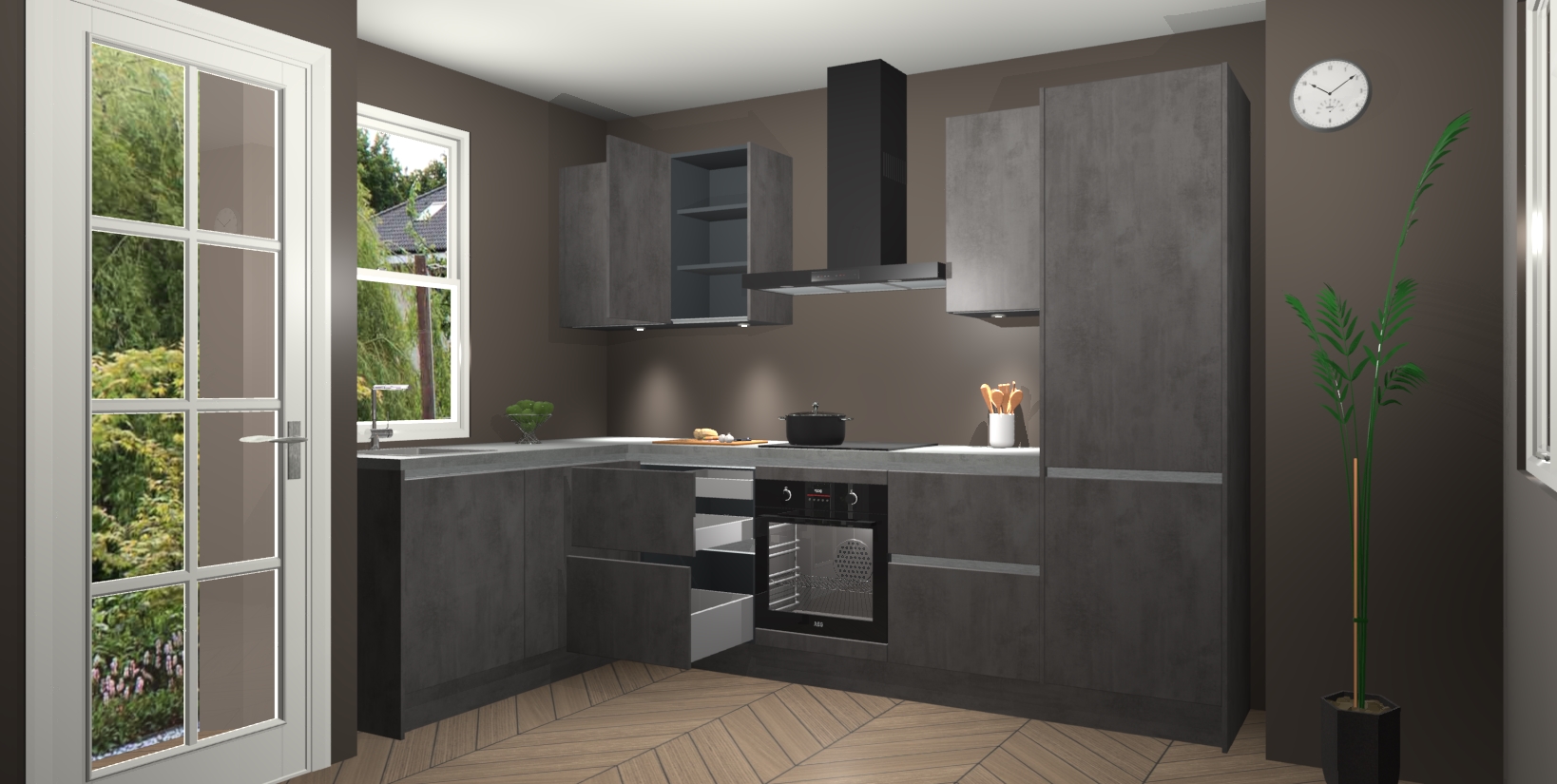 Bent u op zoek naar een strakke, moderne hoekkeuken die uw huis oppept en een moderne uitstraling geeft? Kijk dan niet verder dan de beton antraciet greeploze keuken Beijing. Deze verbluffende hoekkeuken tilt hedendaags design naar een hoger niveau. Qua stijl is deze chique hoekkeuken voorzien van beton antraciet accenten, om een strakke maar opvallende look te creëren. De binnenkant van de kasten is afgewerkt in dezelfde prachtige beton antraciet kleur voor extra esthetische aantrekkingskracht.