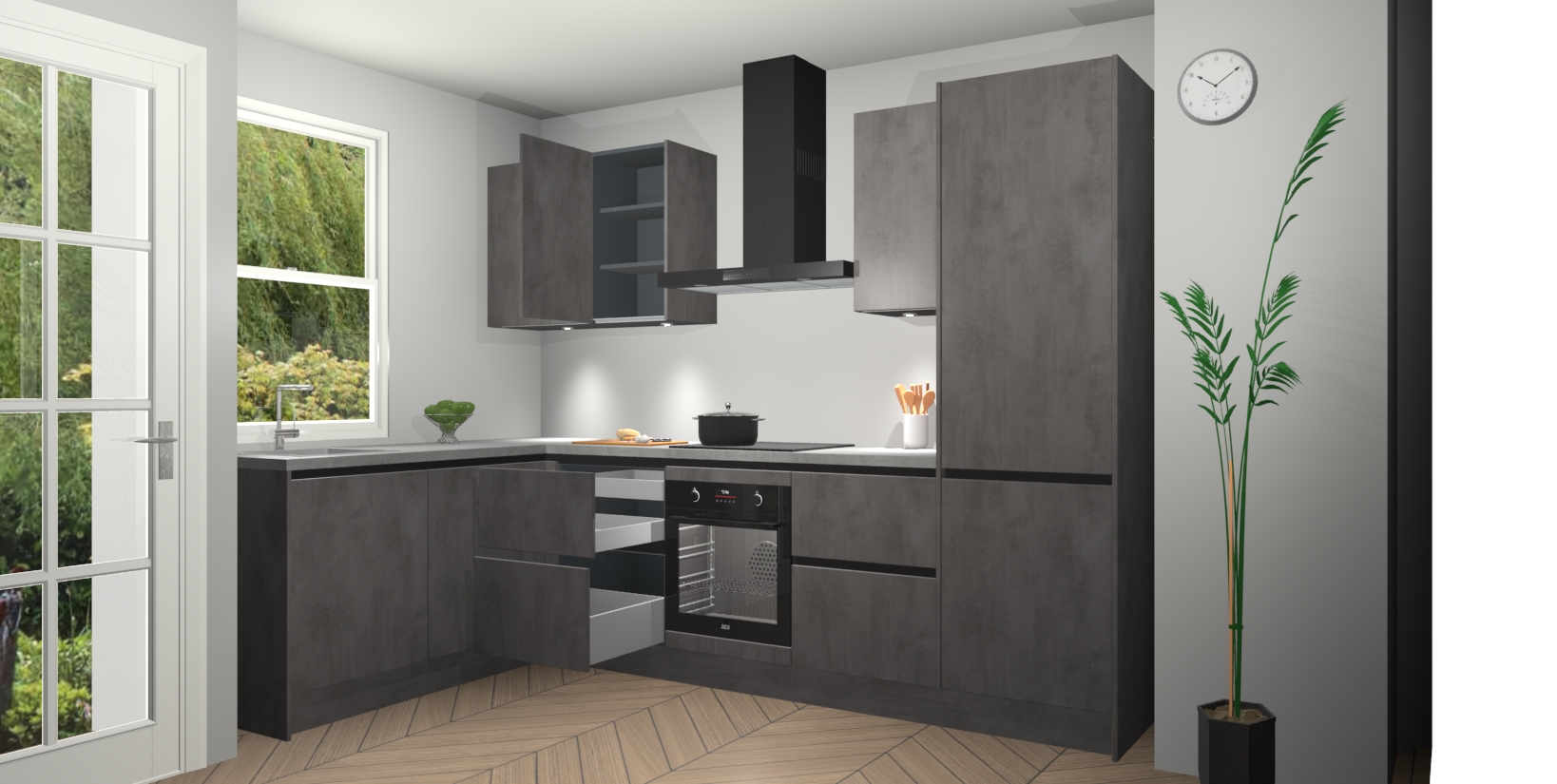 Bent u op zoek naar een strakke, moderne hoekkeuken die uw huis oppept en een moderne uitstraling geeft? Kijk dan niet verder dan de beton antraciet greeploze keuken Beijing. Deze verbluffende hoekkeuken tilt hedendaags design naar een hoger niveau. Qua stijl is deze chique hoekkeuken voorzien van beton antraciet accenten, om een strakke maar opvallende look te creëren. De binnenkant van de kasten is afgewerkt in dezelfde prachtige beton antraciet kleur voor extra esthetische aantrekkingskracht.