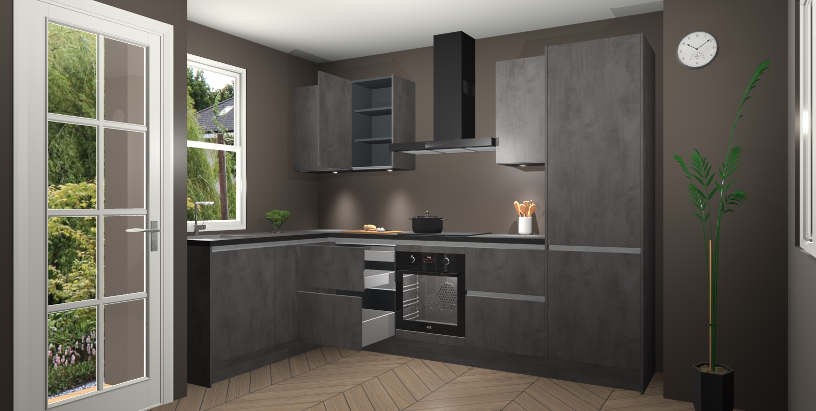 Bent u op zoek naar een strakke, moderne hoekkeuken die uw huis oppept en een moderne uitstraling geeft? Kijk dan niet verder dan de beton antraciet greeploze keuken Beijing. Deze verbluffende hoekkeuken tilt hedendaags design naar een hoger niveau. Qua stijl is deze chique hoekkeuken voorzien van beton antraciet accenten, om een strakke maar opvallende look te creëren. De binnenkant van de kasten is afgewerkt in dezelfde prachtige beton antraciet kleur voor extra esthetische aantrekkingskracht.