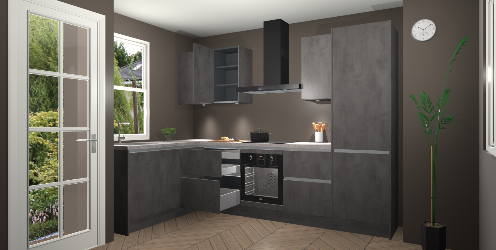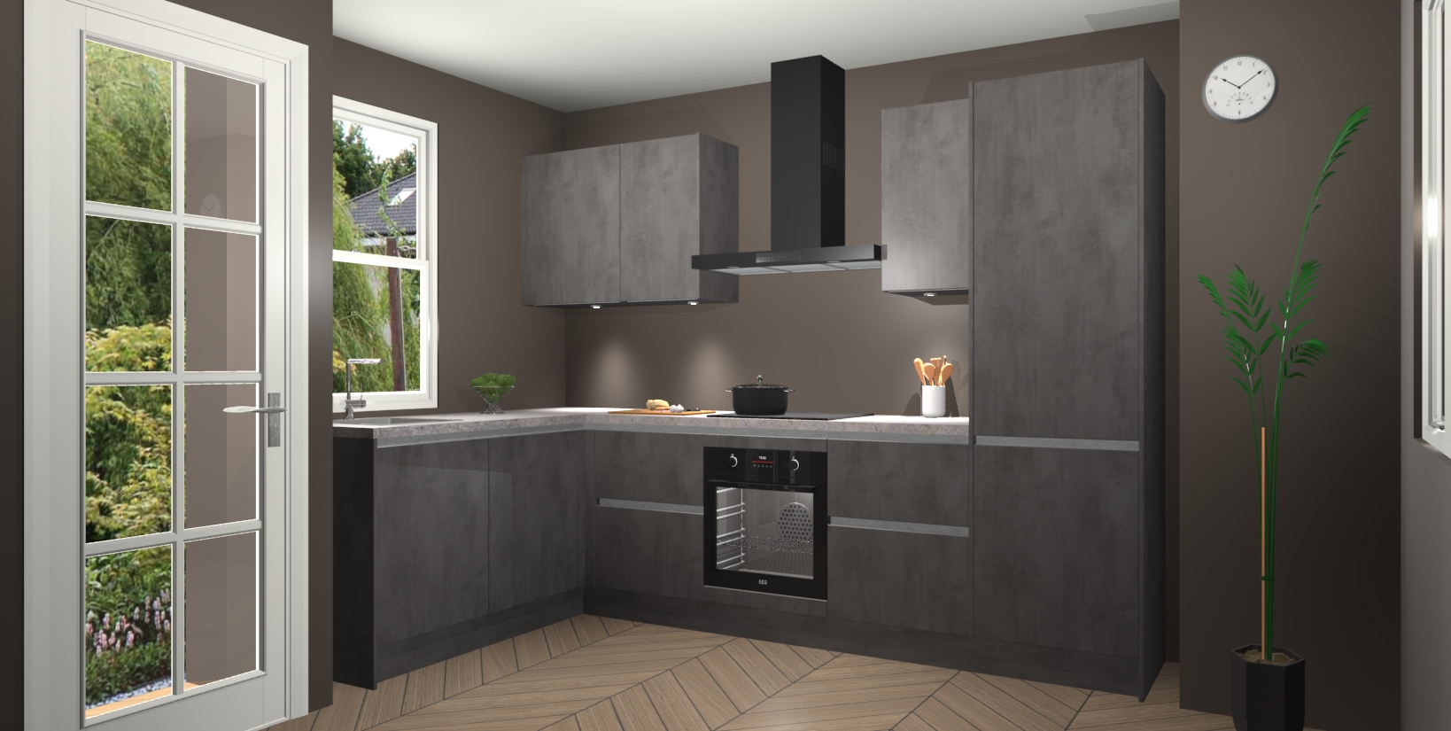 Bent u op zoek naar een strakke, moderne hoekkeuken die uw huis oppept en een moderne uitstraling geeft? Kijk dan niet verder dan de beton antraciet greeploze keuken Beijing. Deze verbluffende hoekkeuken tilt hedendaags design naar een hoger niveau. Qua stijl is deze chique hoekkeuken voorzien van beton antraciet accenten, om een strakke maar opvallende look te creëren. De binnenkant van de kasten is afgewerkt in dezelfde prachtige beton antraciet kleur voor extra esthetische aantrekkingskracht.