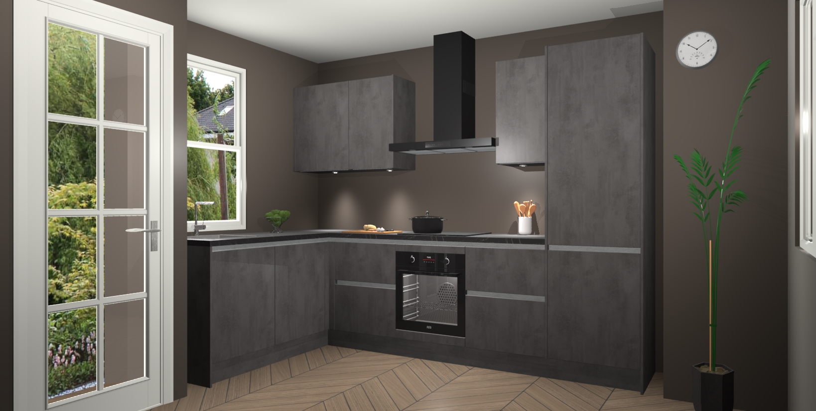 Bent u op zoek naar een strakke, moderne hoekkeuken die uw huis oppept en een moderne uitstraling geeft? Kijk dan niet verder dan de beton antraciet greeploze keuken Beijing. Deze verbluffende hoekkeuken tilt hedendaags design naar een hoger niveau. Qua stijl is deze chique hoekkeuken voorzien van beton antraciet accenten, om een strakke maar opvallende look te creëren. De binnenkant van de kasten is afgewerkt in dezelfde prachtige beton antraciet kleur voor extra esthetische aantrekkingskracht.