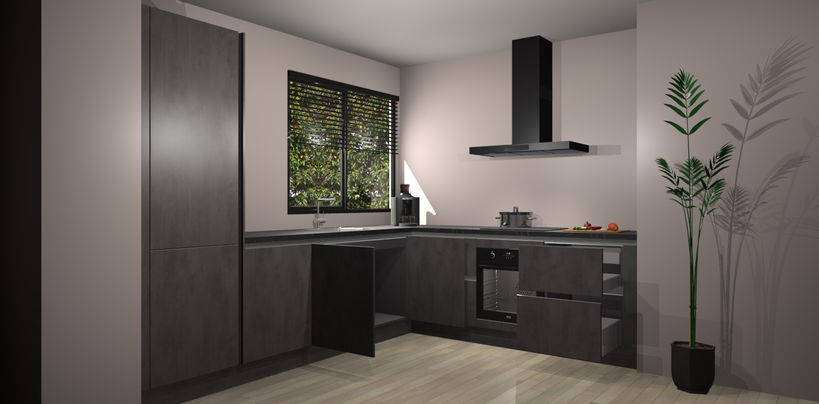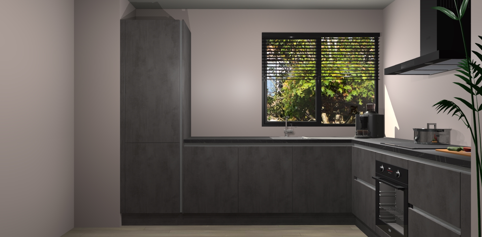 Wij presenteren de revolutie in keukens: de Beton Antraciet greeploze keuken Benidorm. Met modern design, een tijdloos uiterlijk en kasten die al voor gemonteerd worden geleverd, laat deze stijlvolle keuken uw kookervaring op een hele nieuwe manier transformeren.