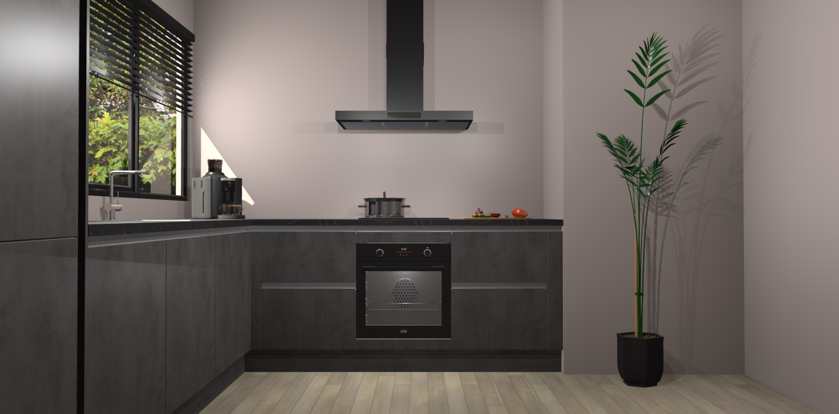 Met een modern, tijdloos design en ruime opslagruimte, zult u zich in no-time thuis voelen in uw nieuwe keuken. Uw leven wordt eenvoudiger met de soft-close deuren die voor het ultieme stille comfort zorgen - geen geluid dat u stoort terwijl u kookt. Ook is de keuken voorzien van 5 ingebouwde apparaten: een oven, inductie kookplaat, afzuigkap, vaatwasser en koelkast. Deze kunnen gemakkelijk na bestelling worden bijgewerkt naar AEG - waardoor uw luxe ervaring compleet is.