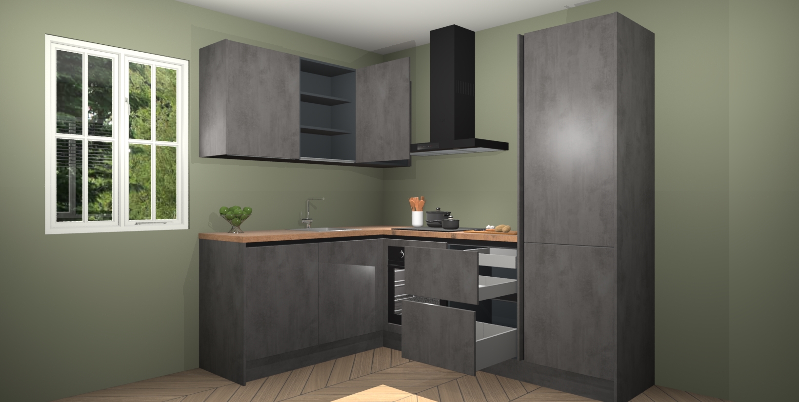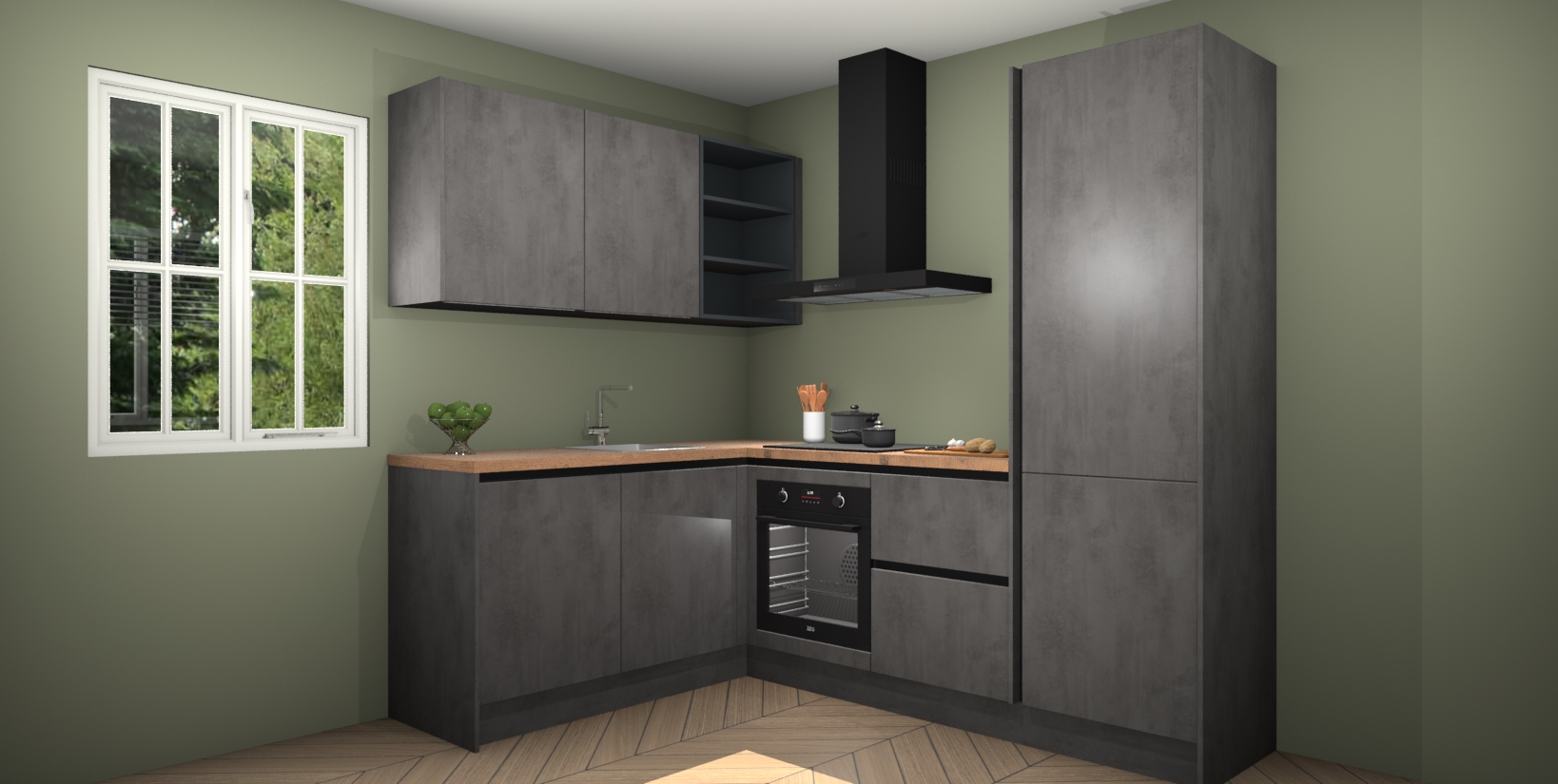 Maak kennis met de Beton Antraciet greeploze keuken Boekarest, een moderne hoekkeuken waar al uw vrienden en familie jaloers op zullen zijn! Het verbluffende mooie ontwerp past in elk interieur en is een ideale keuze voor wie op zoek is naar een klassieke, maar verfijnde look.