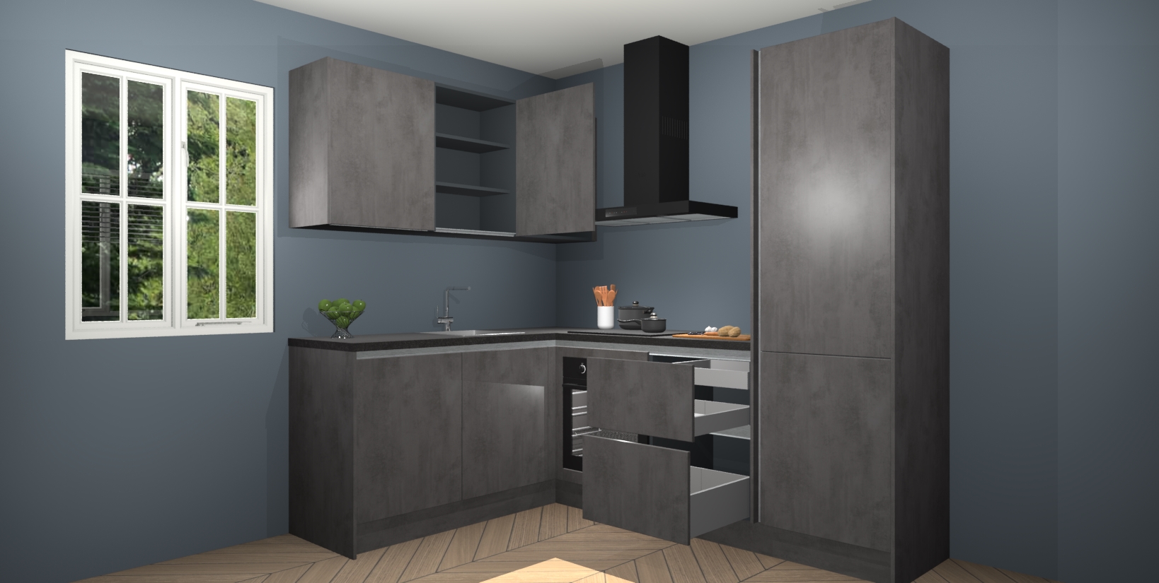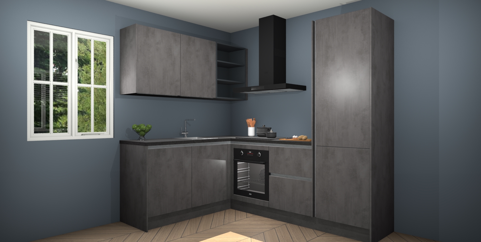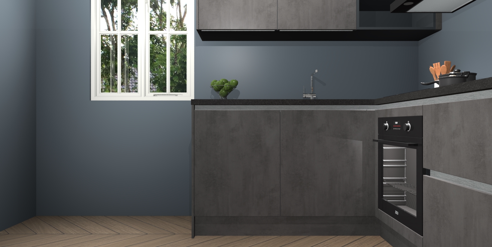 Maak kennis met de Beton Antraciet greeploze keuken Boekarest, een moderne hoekkeuken waar al uw vrienden en familie jaloers op zullen zijn! Het verbluffende mooie ontwerp past in elk interieur en is een ideale keuze voor wie op zoek is naar een klassieke, maar verfijnde look.