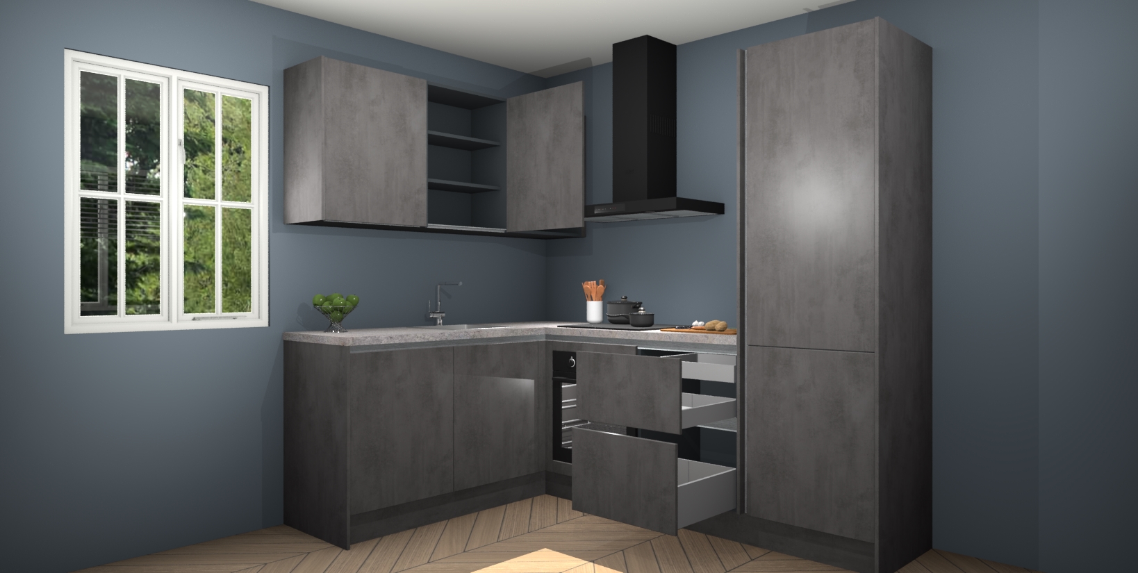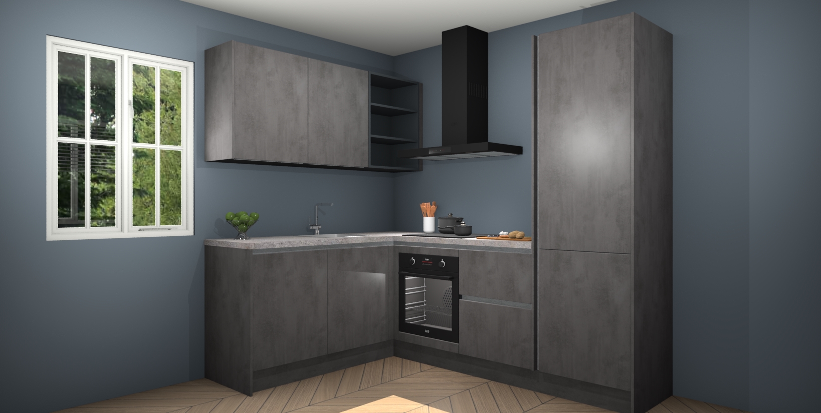 Maak kennis met de Beton Antraciet greeploze keuken Boekarest, een moderne hoekkeuken waar al uw vrienden en familie jaloers op zullen zijn! Het verbluffende mooie ontwerp past in elk interieur en is een ideale keuze voor wie op zoek is naar een klassieke, maar verfijnde look.
