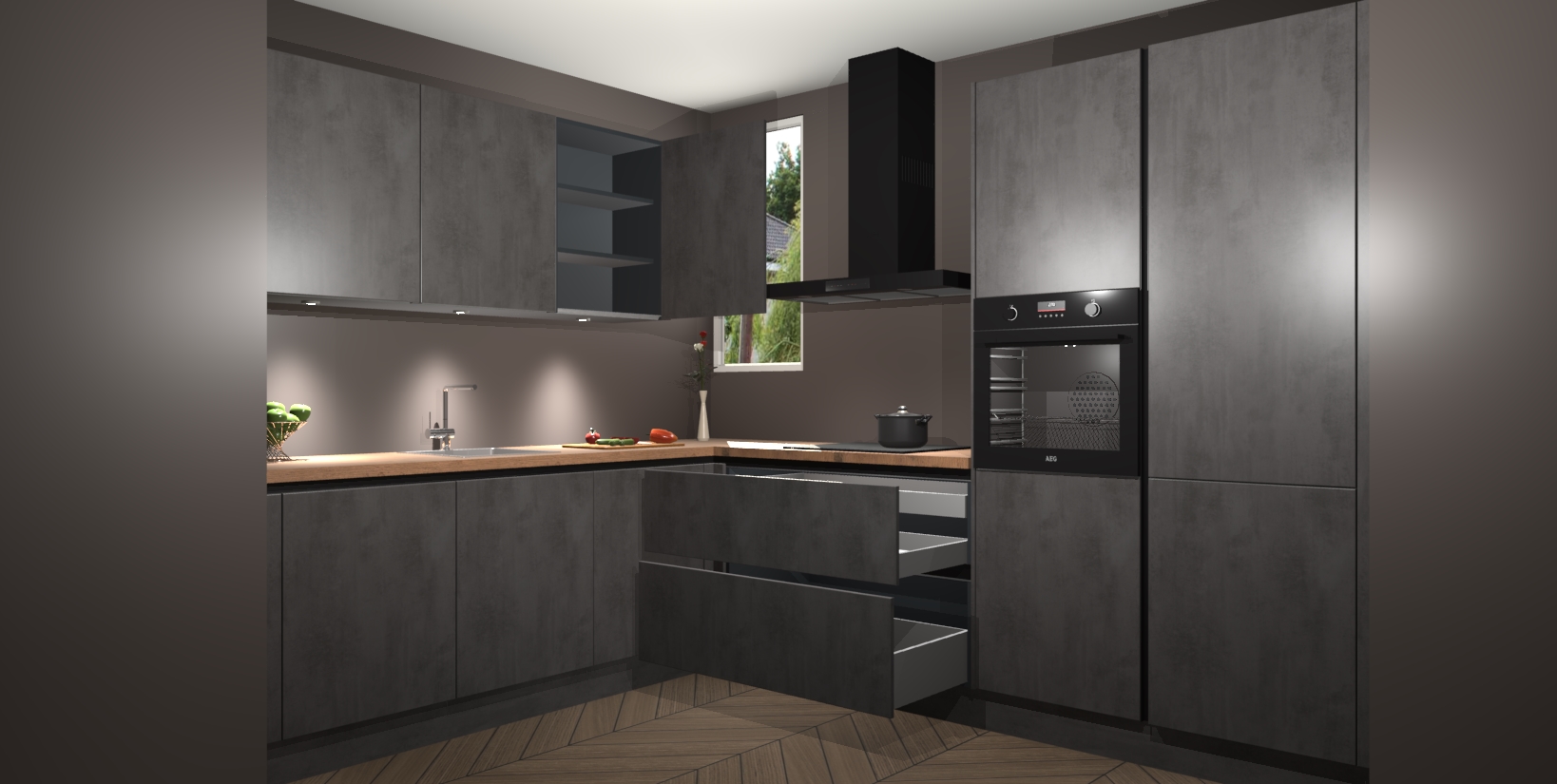 Maak u keuken elegant en verfijnd met de beton antraciet greeploze keuken Buenos Aires! Dit prachtige stuk heeft warme kleuren voor een strak, modern gevoel dat u de adem zal benemen. De handgrepen heeft net als de binnenkant van de kasten dezelfde beton antraciet afwerking, waardoor alles er nog beter uitziet.