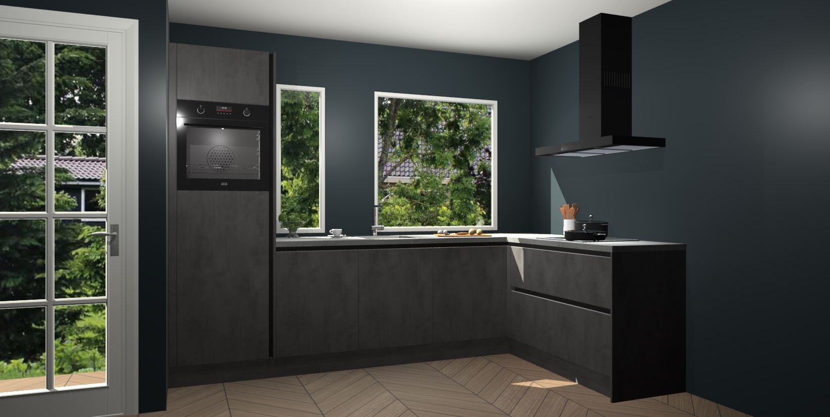 De beton antraciet greeploze keuken Cannes - de perfecte hoekkeuken voor elke ruimte! Onze combinatie van modern, tijdloos design en betrouwbare Duitse kwaliteit gecombineerd met een onverslaanbare prijs maken deze keuken een geweldige manier om uw huis te verbeteren en stijl toe te voegen.