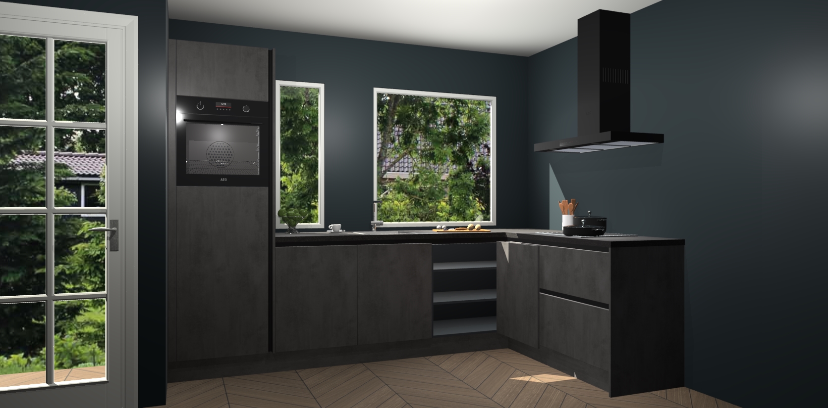 De beton antraciet greeploze keuken Cannes - de perfecte hoekkeuken voor elke ruimte! Onze combinatie van modern, tijdloos design en betrouwbare Duitse kwaliteit gecombineerd met een onverslaanbare prijs maken deze keuken een geweldige manier om uw huis te verbeteren en stijl toe te voegen.