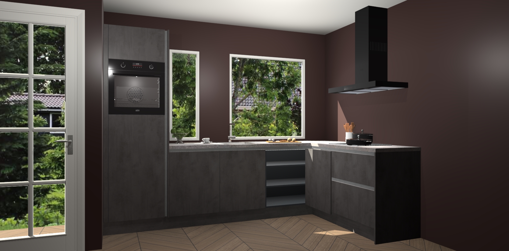 De beton antraciet greeploze keuken Cannes - de perfecte hoekkeuken voor elke ruimte! Onze combinatie van modern, tijdloos design en betrouwbare Duitse kwaliteit gecombineerd met een onverslaanbare prijs maken deze keuken een geweldige manier om uw huis te verbeteren en stijl toe te voegen.