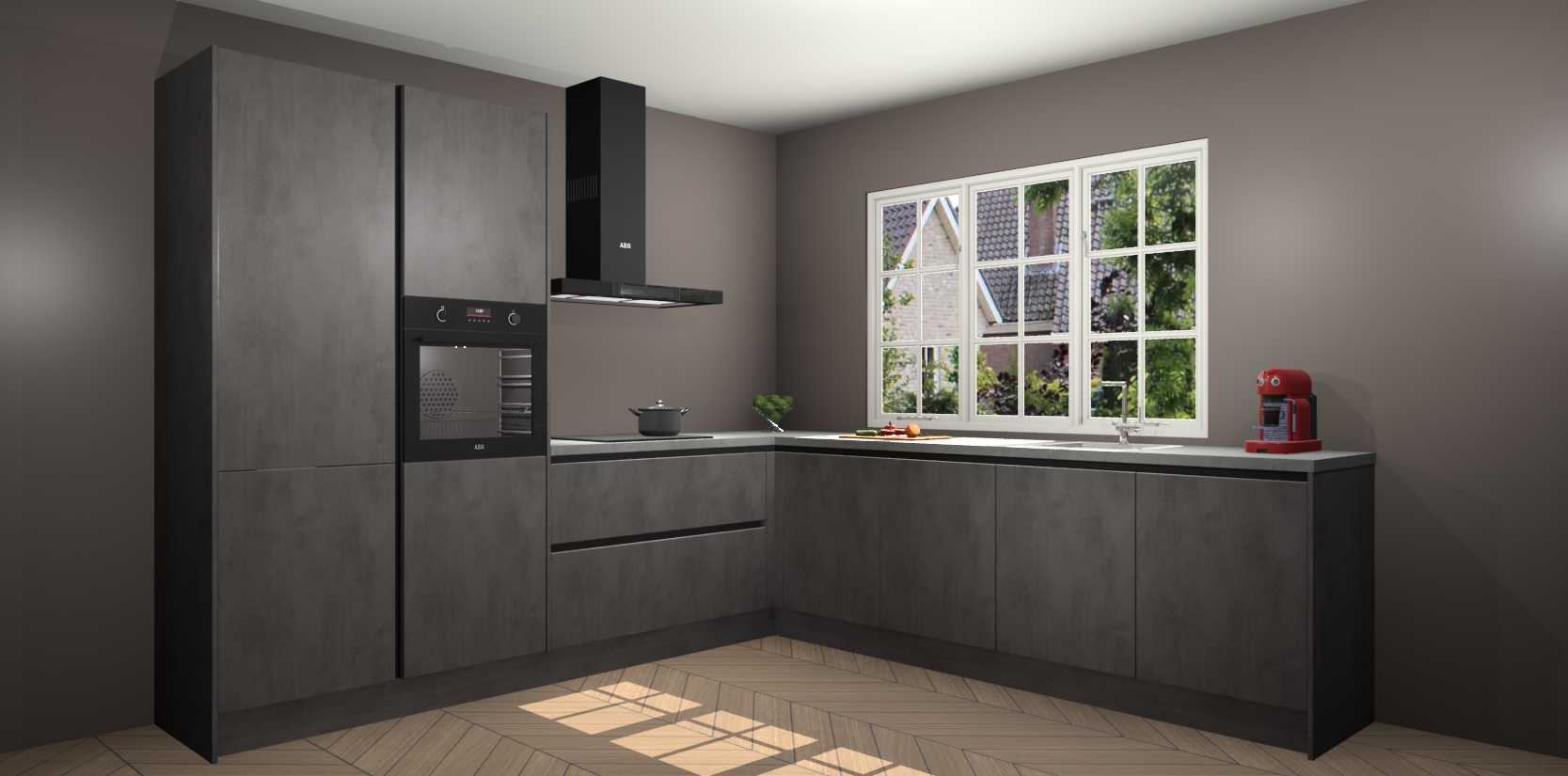 U gaat er alleen maar op vooruit met Beton Antraciet greeploze keuken Casablanca! De prijs is vastgesteld en we garanderen een supersnelle levering van slechts 7 weken. Waar wacht u nog op? uw droomkeuken in zeven weken thuis bezorgd; dat is sneller dan nooit tevoren! Word nu lid van onze familie om ook direct te genieten van al het comfort dat de Beton Antraciet greeploze keuken Casablanca te bieden heeft!