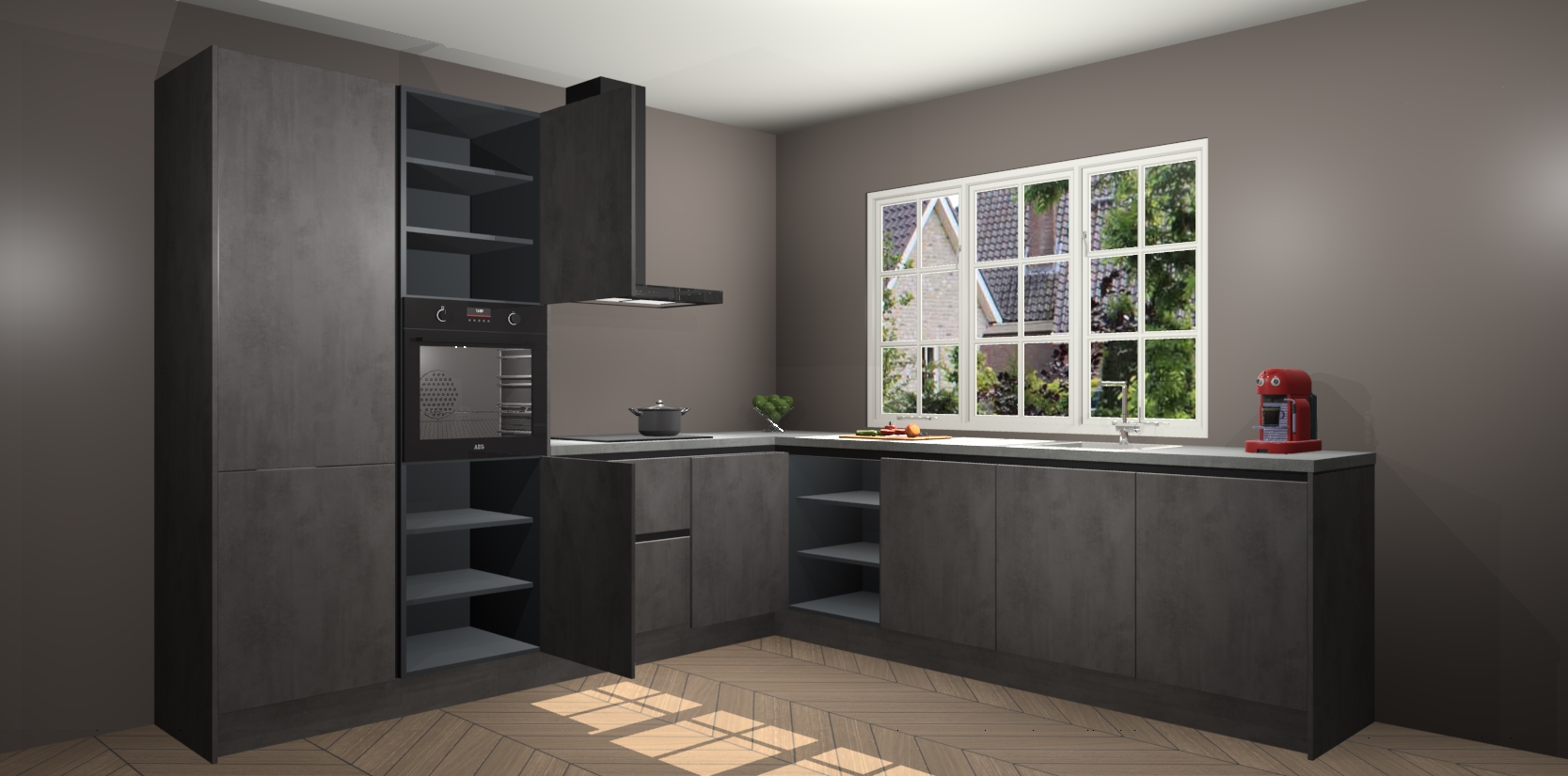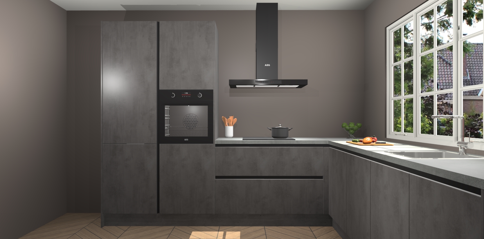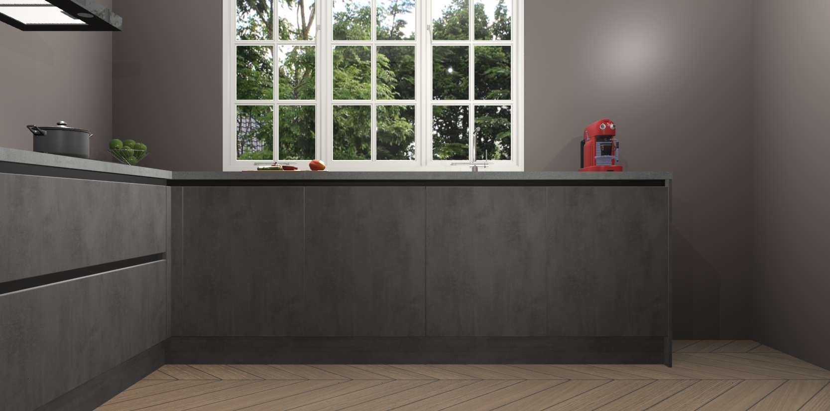 Welkom in de nieuwe wereld van een moderne keuken: de Beton Antraciet greeploze keuken Casablanca! Met dit innovatieve keukendesign haalt u de natuur naar binnen. Neem plaats aan uw hout-look keuken en voel u verbonden met de prachtige Beton Antraciet kleur. Zeer gebruiksvriendelijk, ervaring door prettige materialen en kleur die perfect aansluiten bij uw sfeerkeuze in huis.