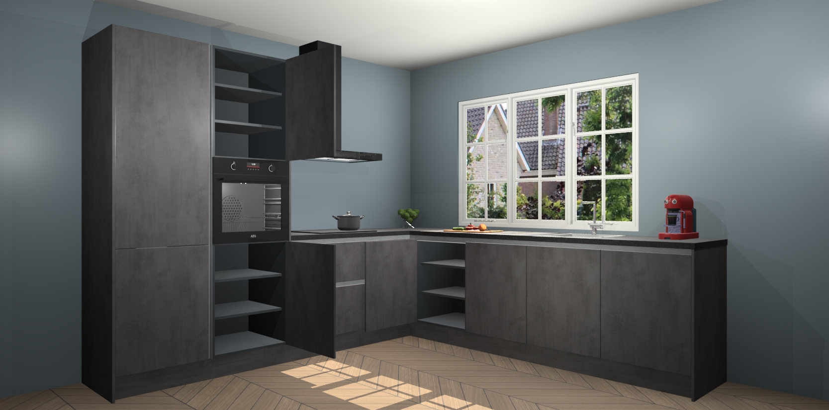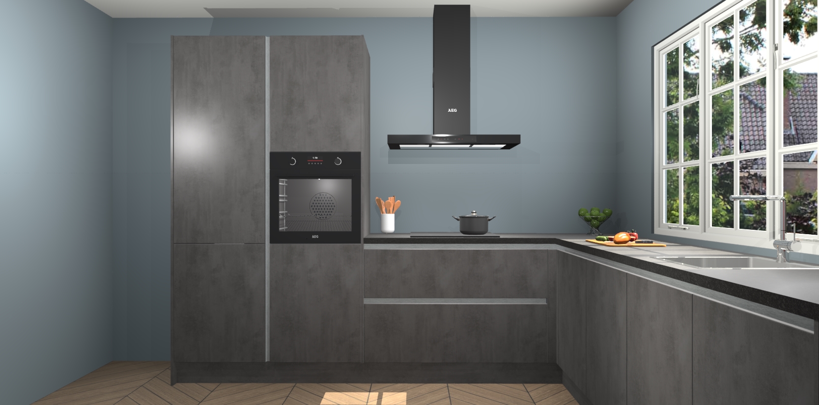 Welkom in de nieuwe wereld van een moderne keuken: de Beton Antraciet greeploze keuken Casablanca! Met dit innovatieve keukendesign haalt u de natuur naar binnen. Neem plaats aan uw hout-look keuken en voel u verbonden met de prachtige Beton Antraciet kleur. Zeer gebruiksvriendelijk, ervaring door prettige materialen en kleur die perfect aansluiten bij uw sfeerkeuze in huis.
