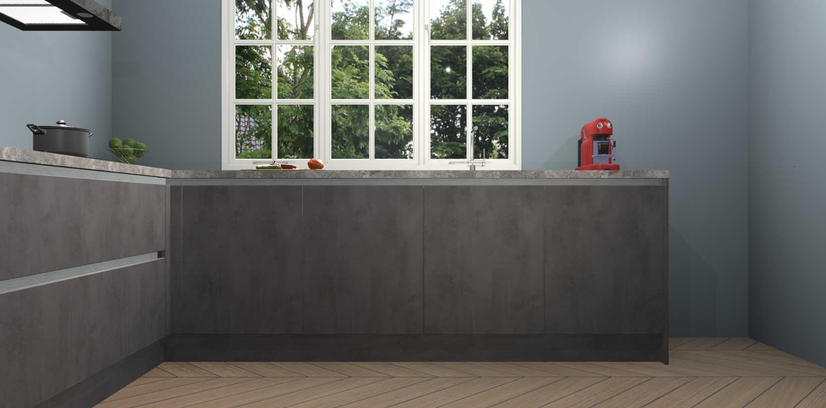 Welkom in de nieuwe wereld van een moderne keuken: de Beton Antraciet greeploze keuken Casablanca! Met dit innovatieve keukendesign haalt u de natuur naar binnen. Neem plaats aan uw hout-look keuken en voel u verbonden met de prachtige Beton Antraciet kleur. Zeer gebruiksvriendelijk, ervaring door prettige materialen en kleur die perfect aansluiten bij uw sfeerkeuze in huis.