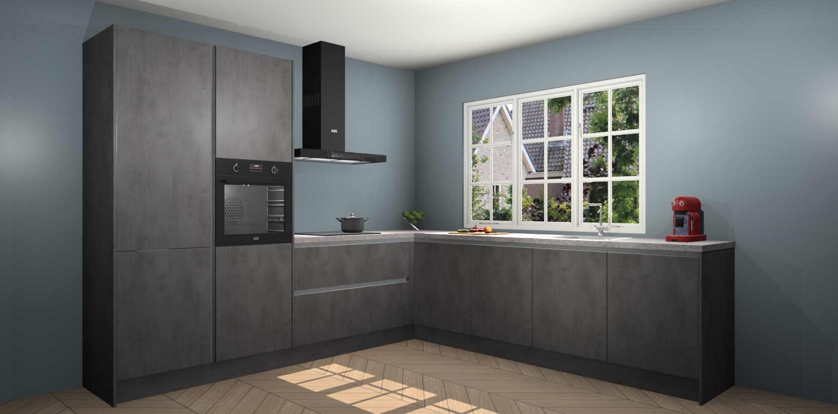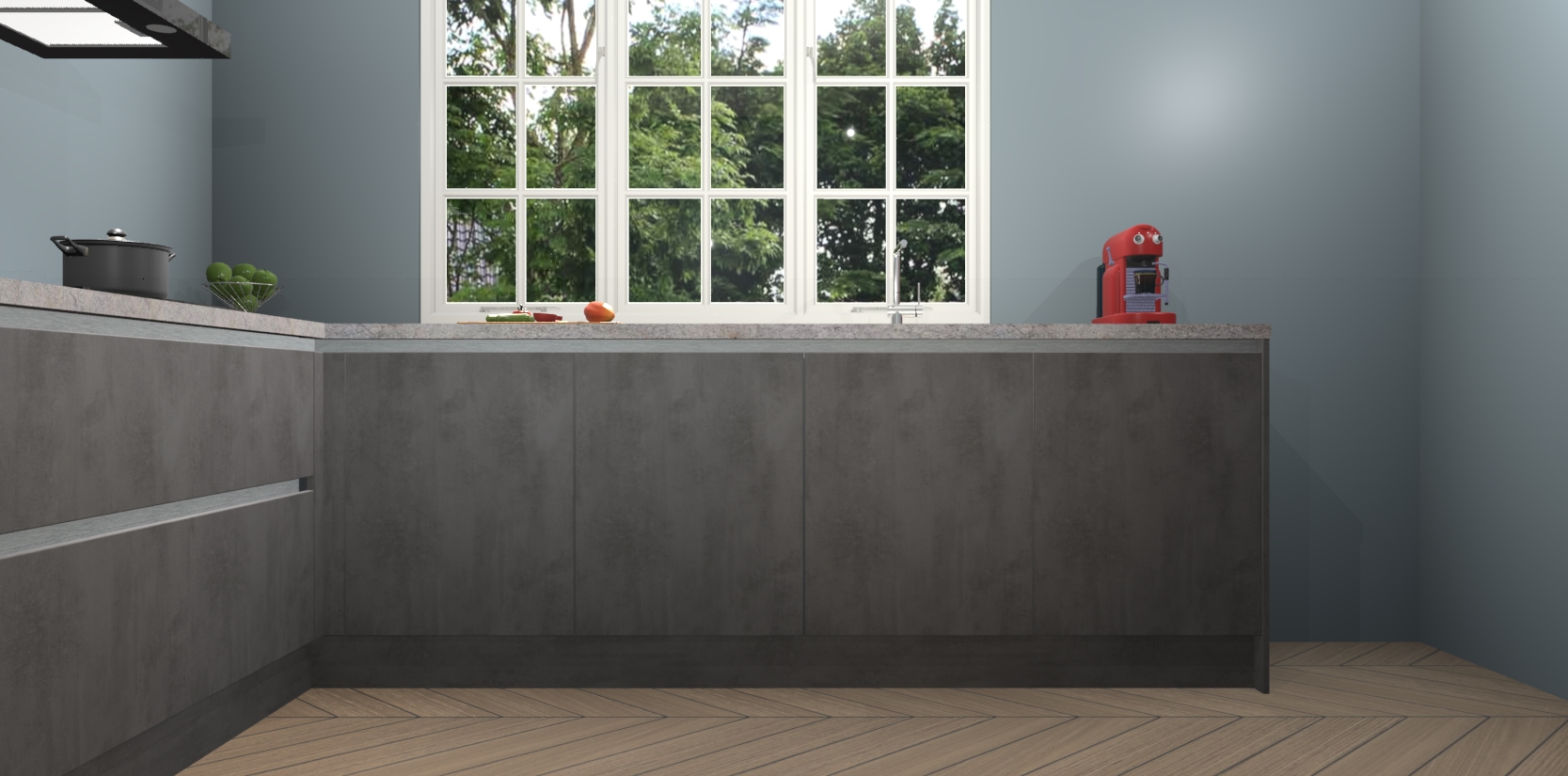U gaat er alleen maar op vooruit met Beton Antraciet greeploze keuken Casablanca! De prijs is vastgesteld en we garanderen een supersnelle levering van slechts 7 weken. Waar wacht u nog op? uw droomkeuken in zeven weken thuis bezorgd; dat is sneller dan nooit tevoren! Word nu lid van onze familie om ook direct te genieten van al het comfort dat de Beton Antraciet greeploze keuken Casablanca te bieden heeft!