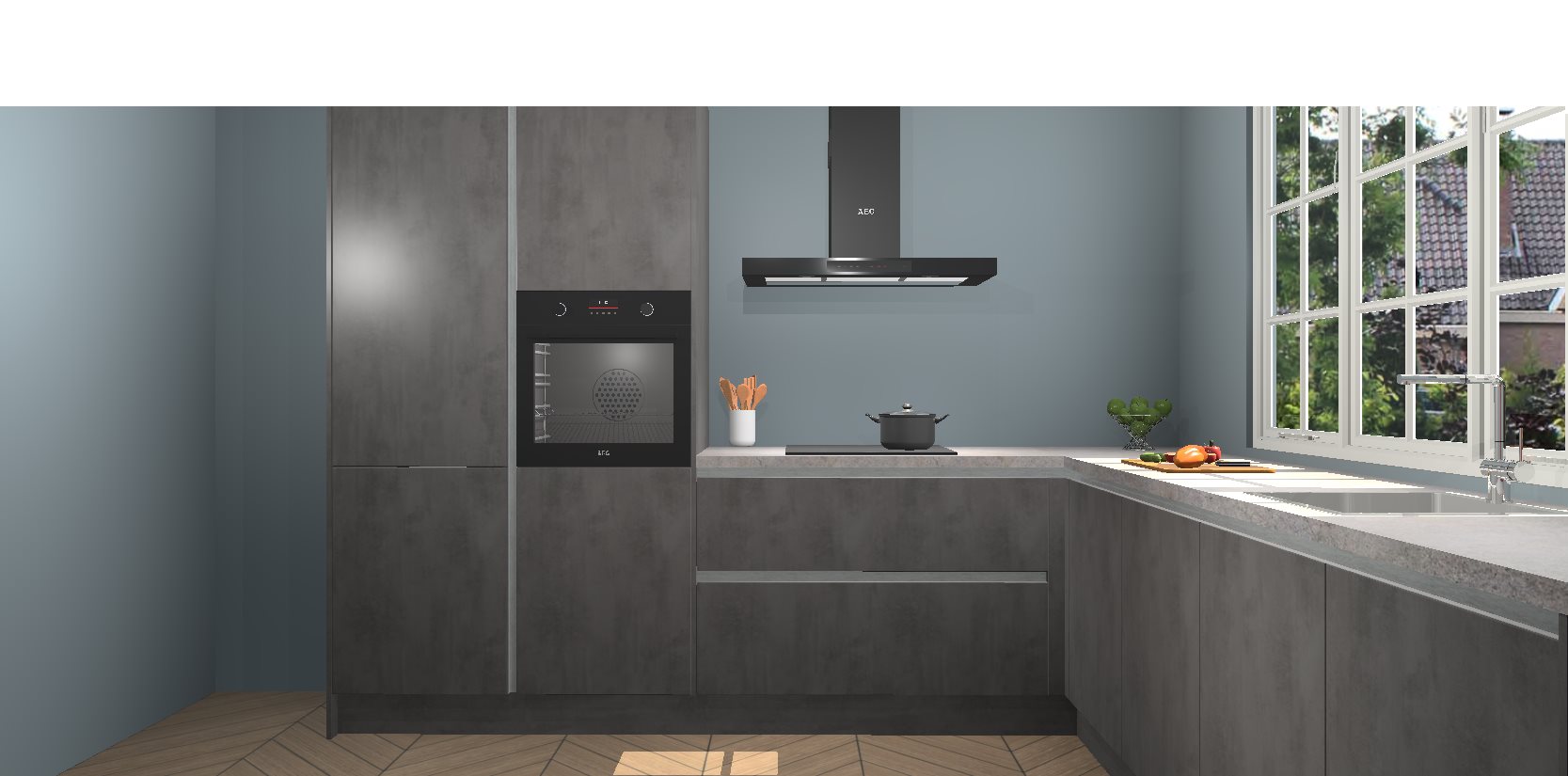 De keuken heeft veel opbergruimte, waardoor u alle ingrediënten gemakkelijk bereikbaar hebt staan. En daarnaast bevat deze volledig uitgeruste keuken ook 5 ingebouwde apparaten: een oven, inductiekookplaat, afzuigkap, vaatwasser en koelkast. Deze zijn heel eenvoudig na bestellen te upgraden naar AEG als u dit wilt. Bovendien zijn de softclose-kastdeuren ideaal; geef ze gewoon even een tikje en ze sluiten automatisch met geruisloze precisie.