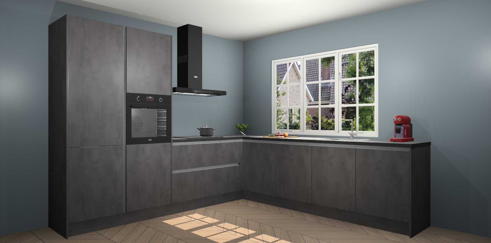 U gaat er alleen maar op vooruit met Beton Antraciet greeploze keuken Casablanca! De prijs is vastgesteld en we garanderen een supersnelle levering van slechts 7 weken. Waar wacht u nog op? uw droomkeuken in zeven weken thuis bezorgd; dat is sneller dan nooit tevoren! Word nu lid van onze familie om ook direct te genieten van al het comfort dat de Beton Antraciet greeploze keuken Casablanca te bieden heeft!