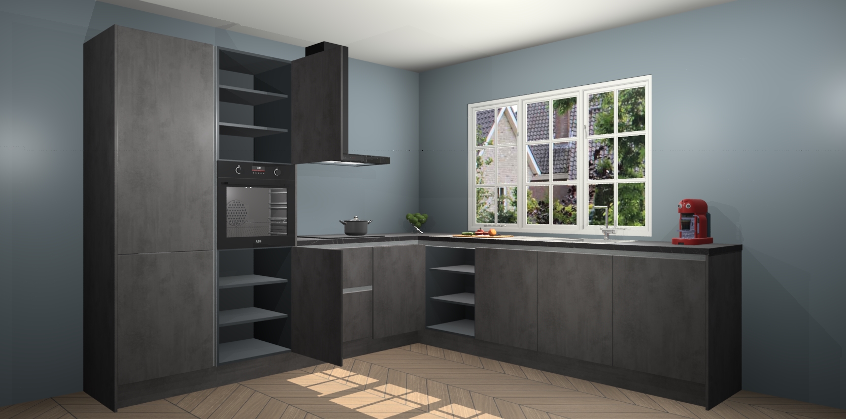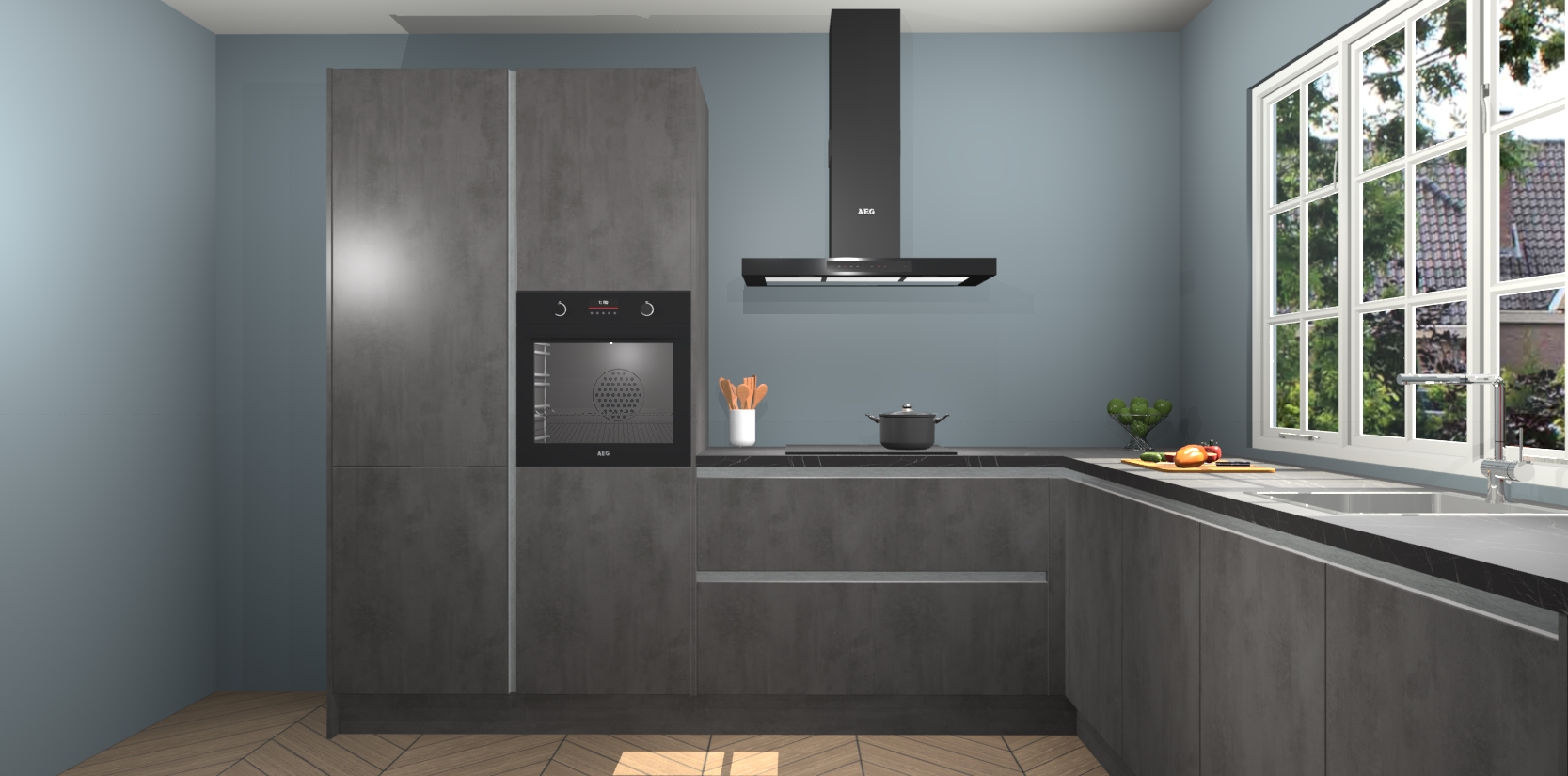 Welkom in de nieuwe wereld van een moderne keuken: de Beton Antraciet greeploze keuken Casablanca! Met dit innovatieve keukendesign haalt u de natuur naar binnen. Neem plaats aan uw hout-look keuken en voel u verbonden met de prachtige Beton Antraciet kleur. Zeer gebruiksvriendelijk, ervaring door prettige materialen en kleur die perfect aansluiten bij uw sfeerkeuze in huis.