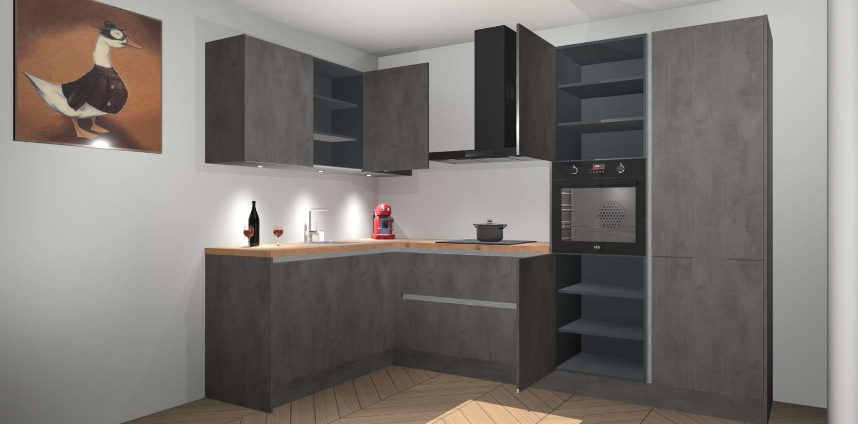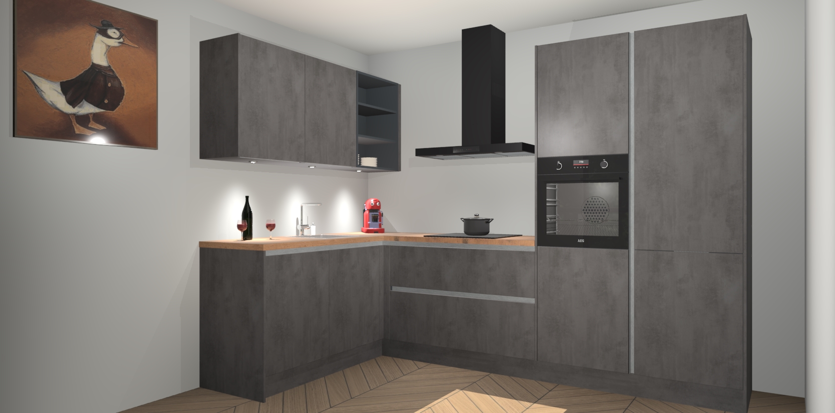 De Beton Antraciet greeploze keuken Cognac is een adembenemend ontwerp met een modern en tijdloos uiterlijk. Deze luxe keuken straalt echt aristocratisch uit, waardoor uw koken plezieriger zal worden! Het prachtige design begint bij de hoekkeuken, wat perfect past bij elk type interieur. Bovendien bevat deze hoogwaardige set vijf inbouwapparaten - van oven tot koelkast - die via bestelling naar AEG geüpgraded kunnen worden!