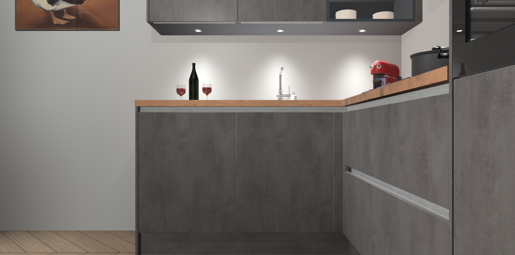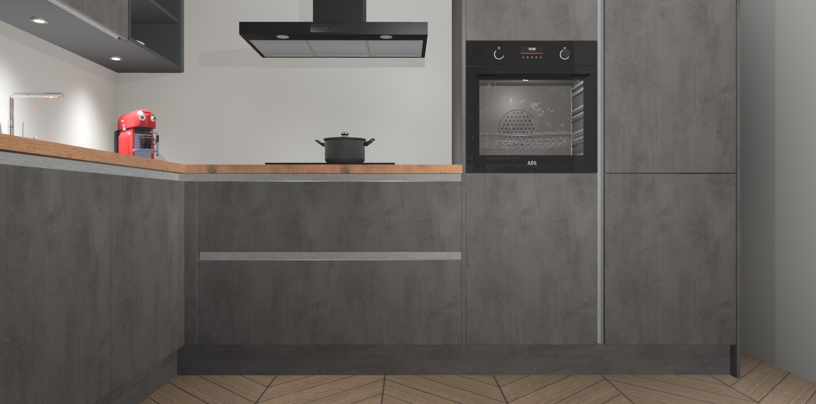 De Beton Antraciet greeploze keuken Cognac gaat alleen maar om de beste keukenervaring. Kies gewoon de beste apparatuur en ongeëvenaarde Duitse constructie die u thuis wilt hebben en verander uw huiskamer hartelijkheid meteen in professionaliteit. Laat de toon weten dat u gemakkelijk kan genieten van alle luxe die u verdiend? Bestel nu de Beton Antraciet greeploze keuken Cognac voor bij u thuis!