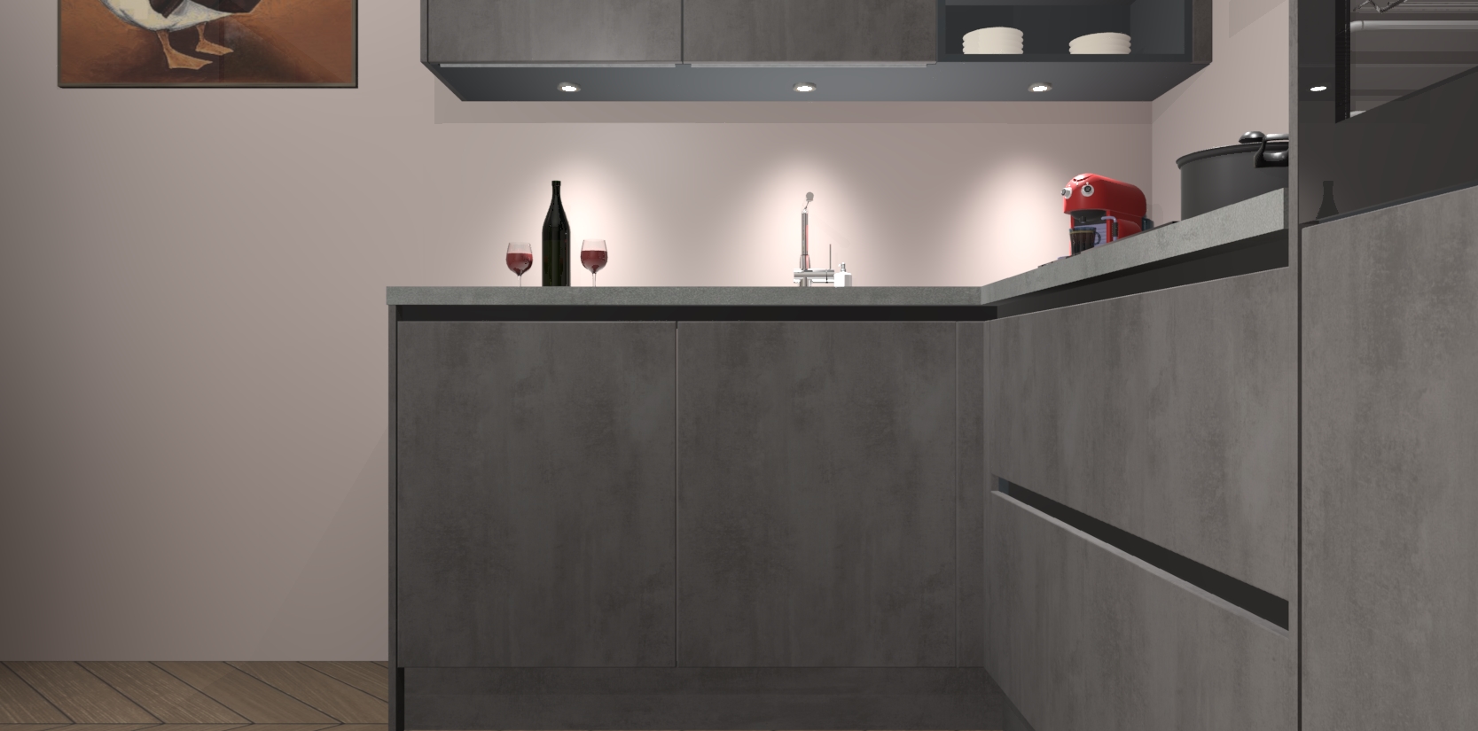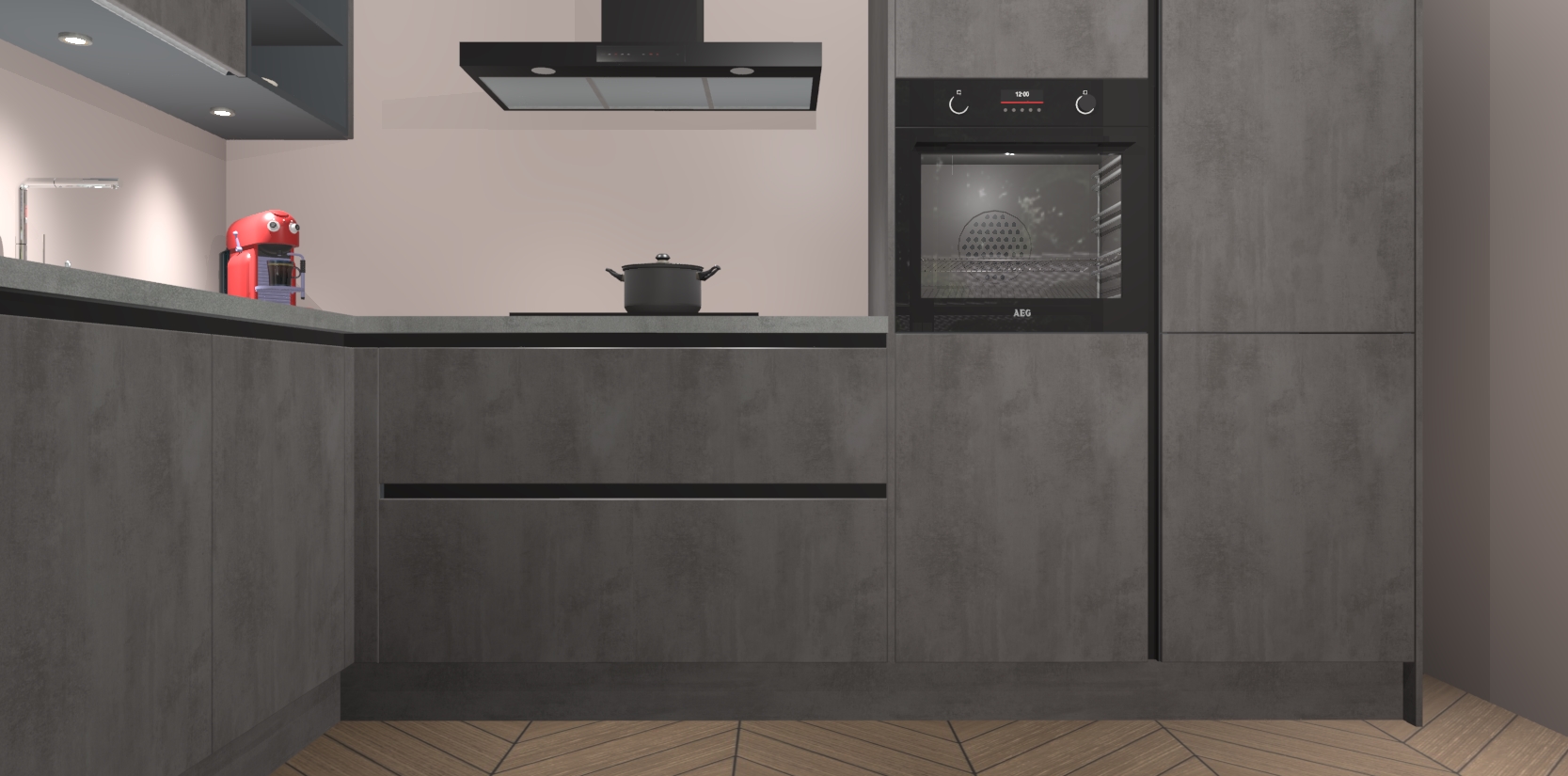 De Beton Antraciet greeploze keuken Cognac gaat alleen maar om de beste keukenervaring. Kies gewoon de beste apparatuur en ongeëvenaarde Duitse constructie die u thuis wilt hebben en verander uw huiskamer hartelijkheid meteen in professionaliteit. Laat de toon weten dat u gemakkelijk kan genieten van alle luxe die u verdiend? Bestel nu de Beton Antraciet greeploze keuken Cognac voor bij u thuis!
