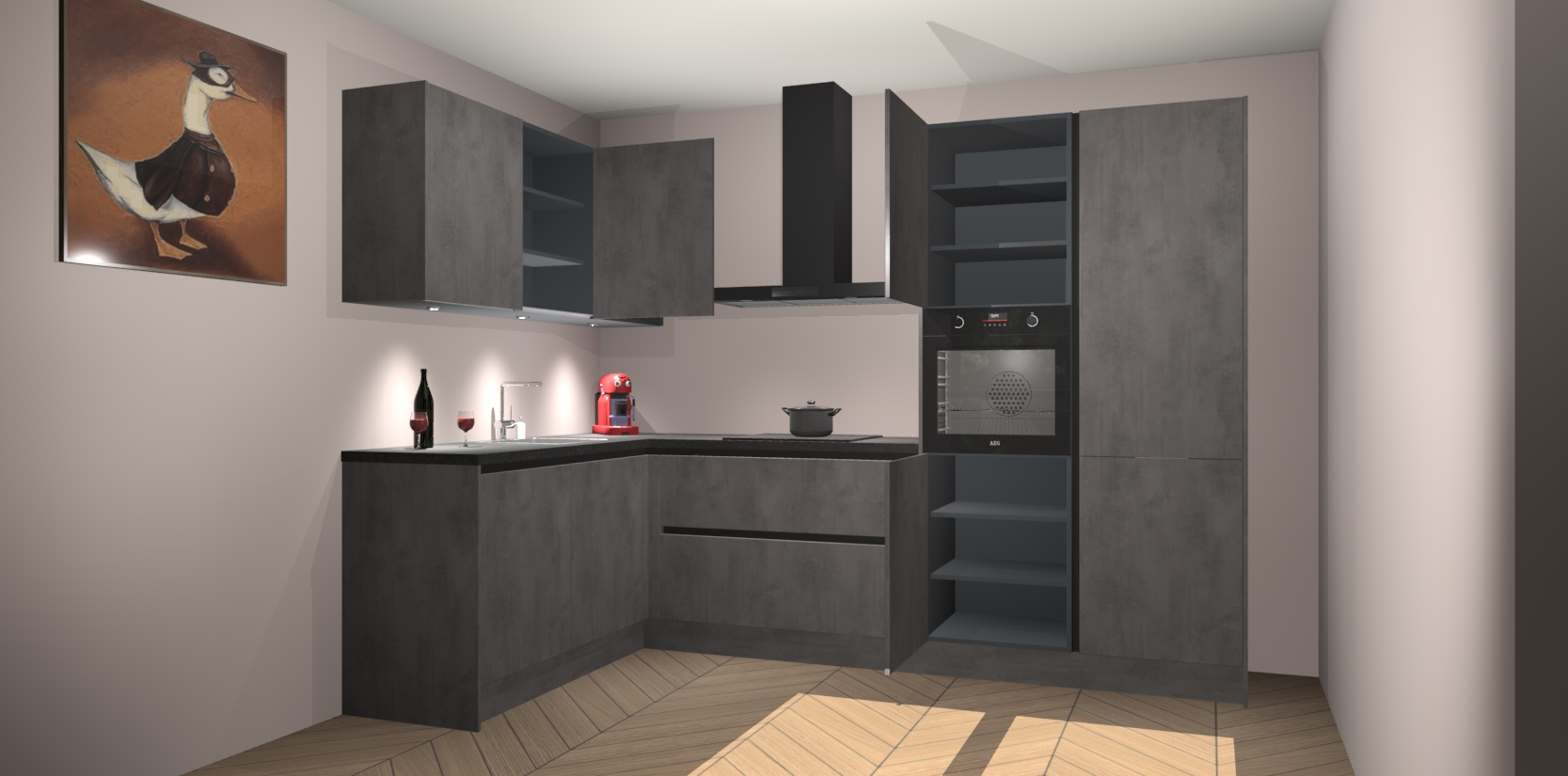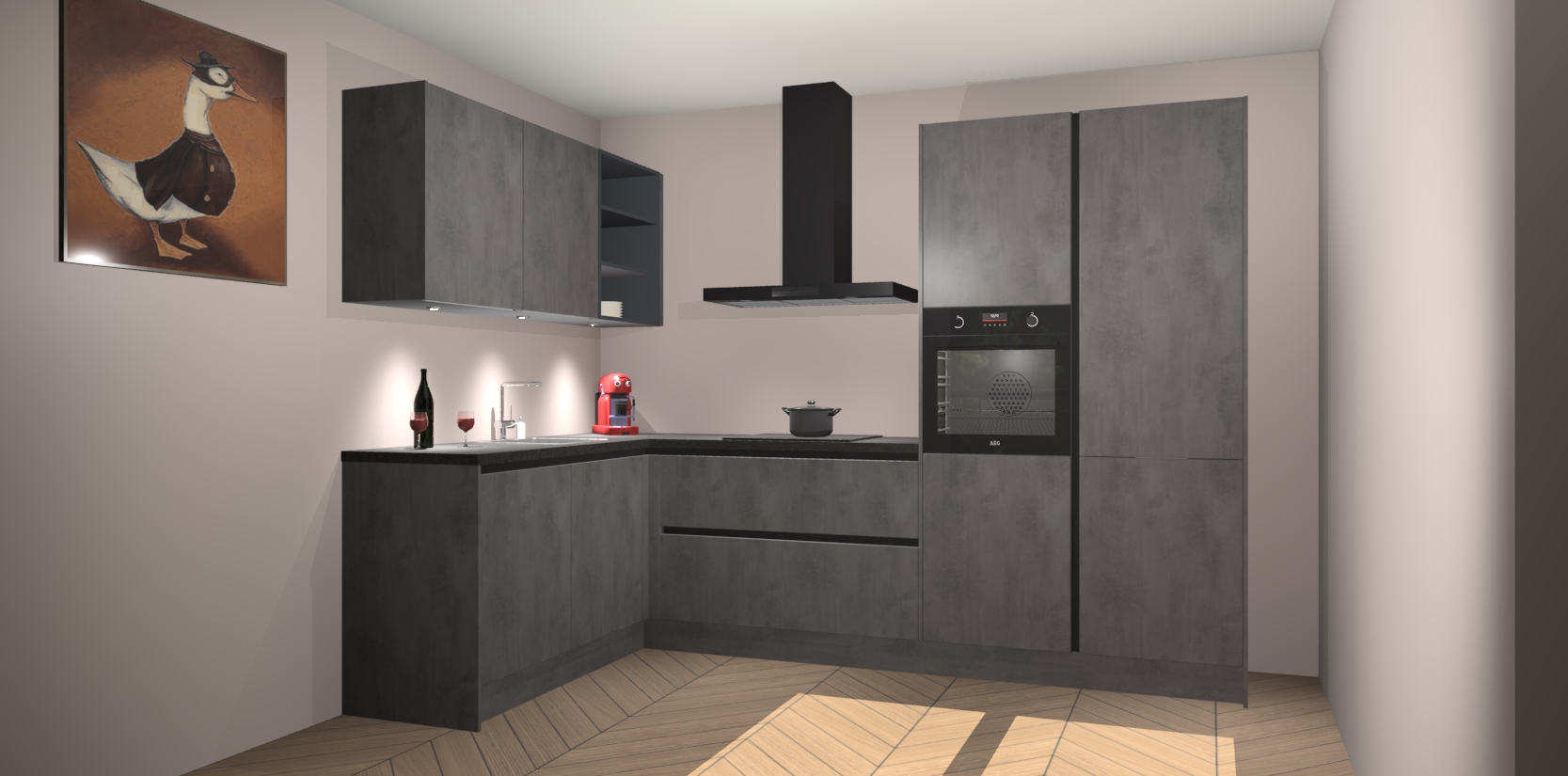 De Beton Antraciet greeploze keuken Cognac is een adembenemend ontwerp met een modern en tijdloos uiterlijk. Deze luxe keuken straalt echt aristocratisch uit, waardoor uw koken plezieriger zal worden! Het prachtige design begint bij de hoekkeuken, wat perfect past bij elk type interieur. Bovendien bevat deze hoogwaardige set vijf inbouwapparaten - van oven tot koelkast - die via bestelling naar AEG geüpgraded kunnen worden!
