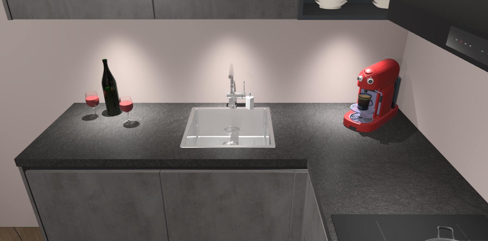 - Bij een hoekwerkblad zijn de hoeken in gevreesd en op maat gemaakt