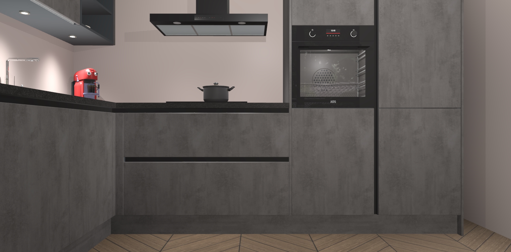 De Beton Antraciet greeploze keuken Cognac gaat alleen maar om de beste keukenervaring. Kies gewoon de beste apparatuur en ongeëvenaarde Duitse constructie die u thuis wilt hebben en verander uw huiskamer hartelijkheid meteen in professionaliteit. Laat de toon weten dat u gemakkelijk kan genieten van alle luxe die u verdiend? Bestel nu de Beton Antraciet greeploze keuken Cognac voor bij u thuis!
