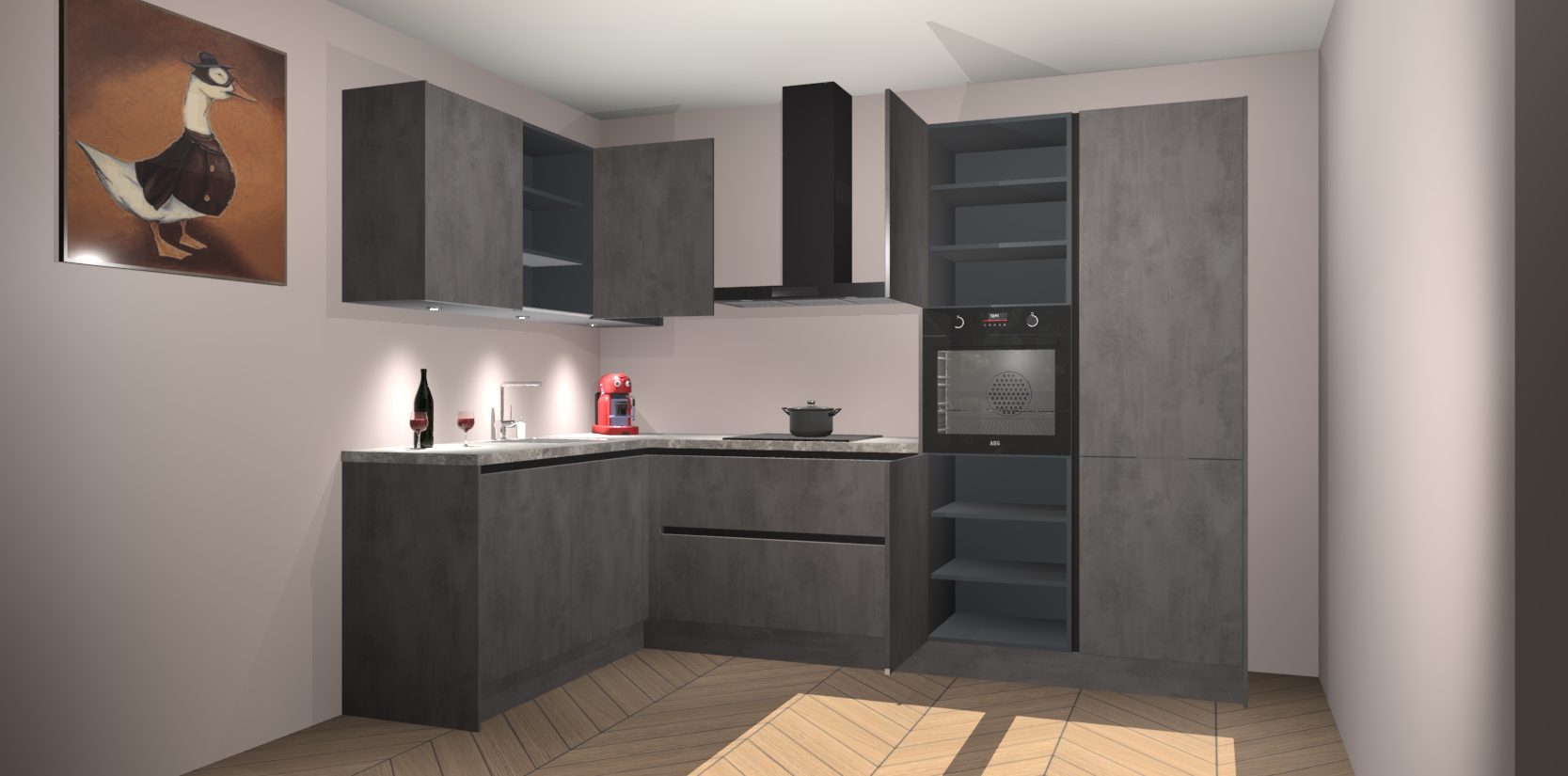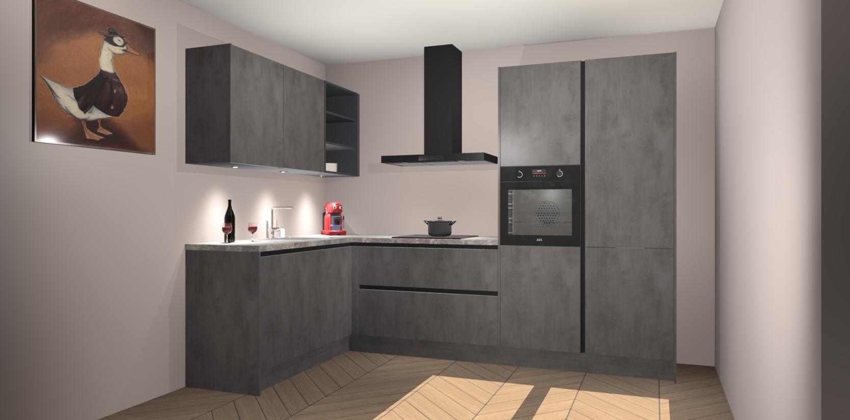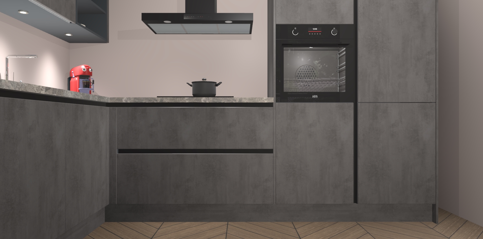 De Beton Antraciet greeploze keuken Cognac is een adembenemend ontwerp met een modern en tijdloos uiterlijk. Deze luxe keuken straalt echt aristocratisch uit, waardoor uw koken plezieriger zal worden! Het prachtige design begint bij de hoekkeuken, wat perfect past bij elk type interieur. Bovendien bevat deze hoogwaardige set vijf inbouwapparaten - van oven tot koelkast - die via bestelling naar AEG geüpgraded kunnen worden!