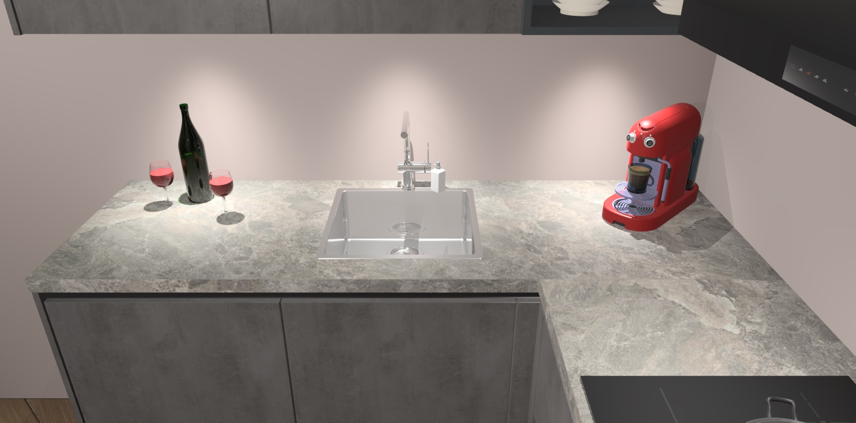 - Bij een hoekwerkblad zijn de hoeken in gevreesd en op maat gemaakt