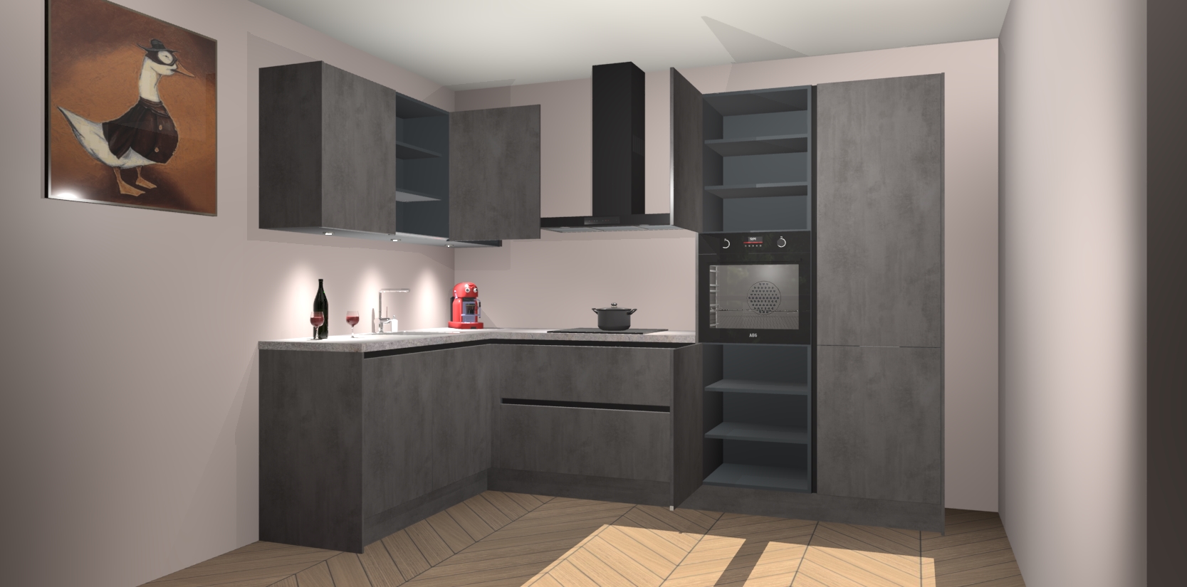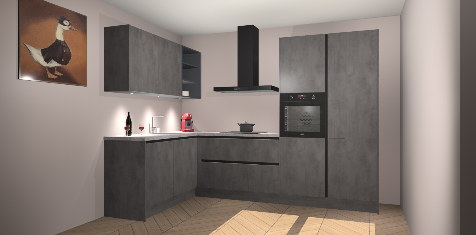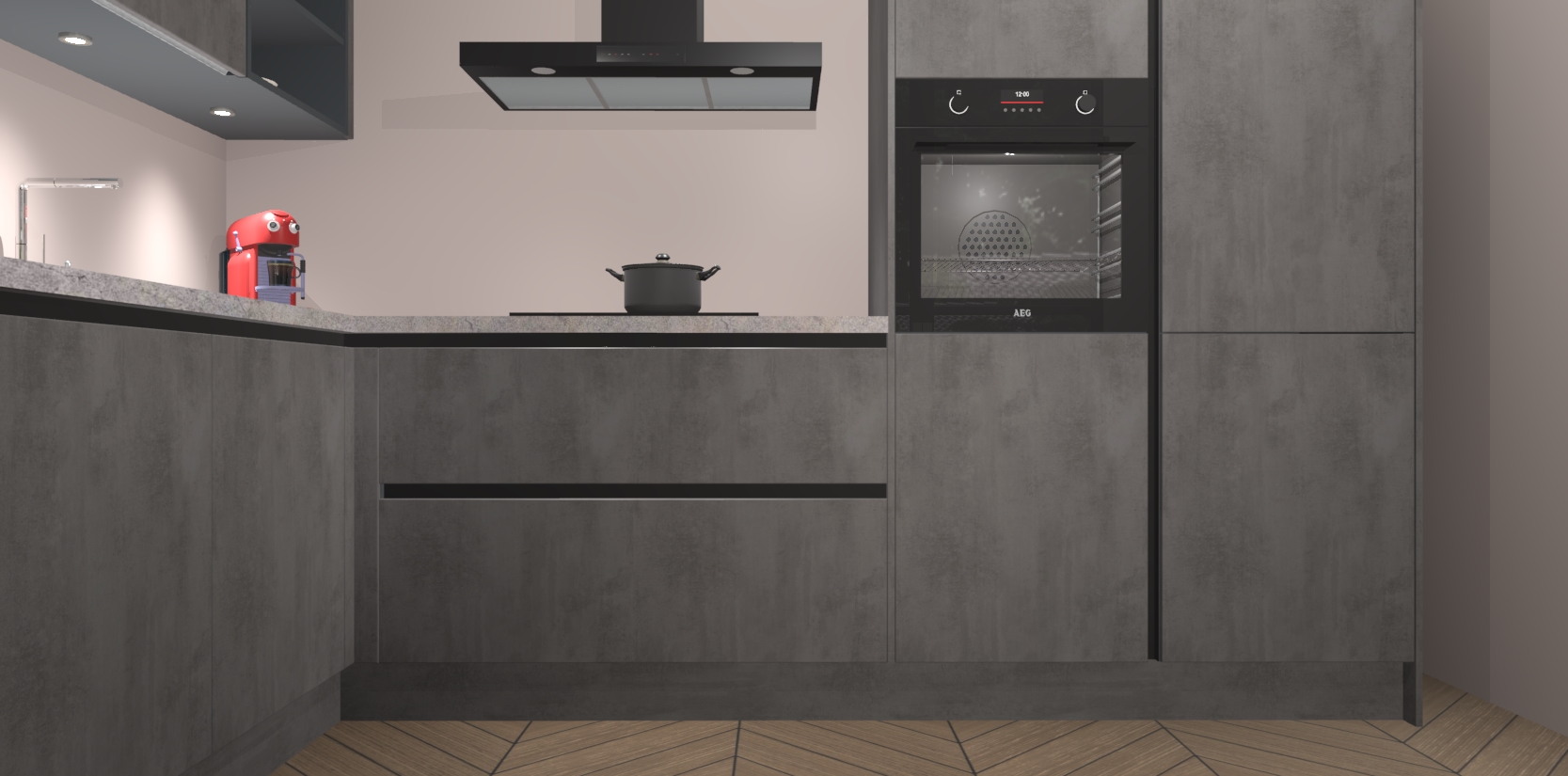 De Beton Antraciet greeploze keuken Cognac gaat alleen maar om de beste keukenervaring. Kies gewoon de beste apparatuur en ongeëvenaarde Duitse constructie die u thuis wilt hebben en verander uw huiskamer hartelijkheid meteen in professionaliteit. Laat de toon weten dat u gemakkelijk kan genieten van alle luxe die u verdiend? Bestel nu de Beton Antraciet greeploze keuken Cognac voor bij u thuis!